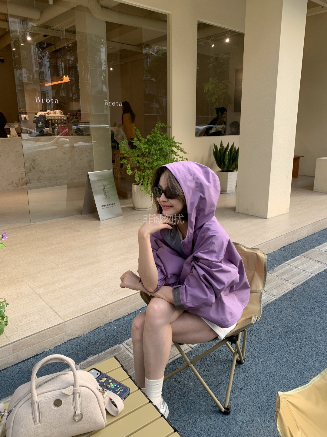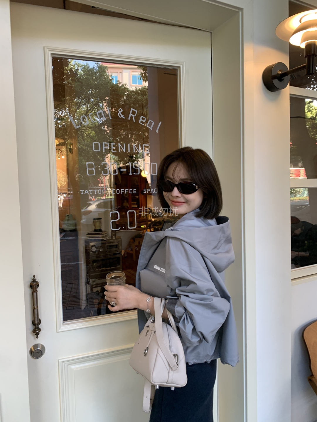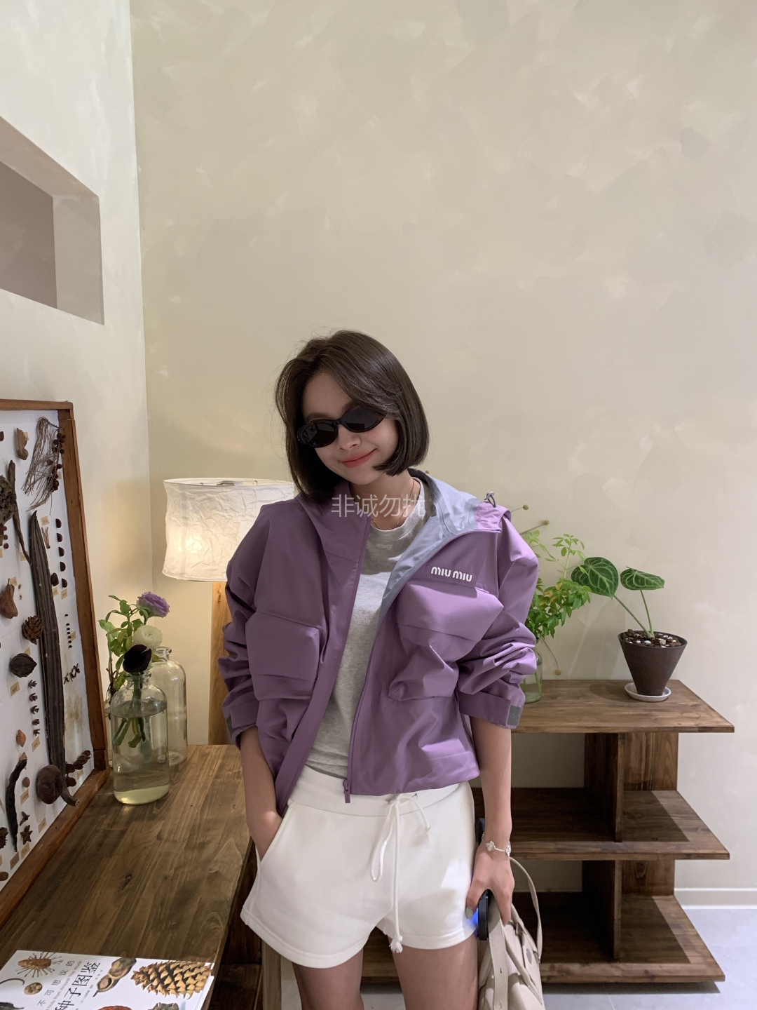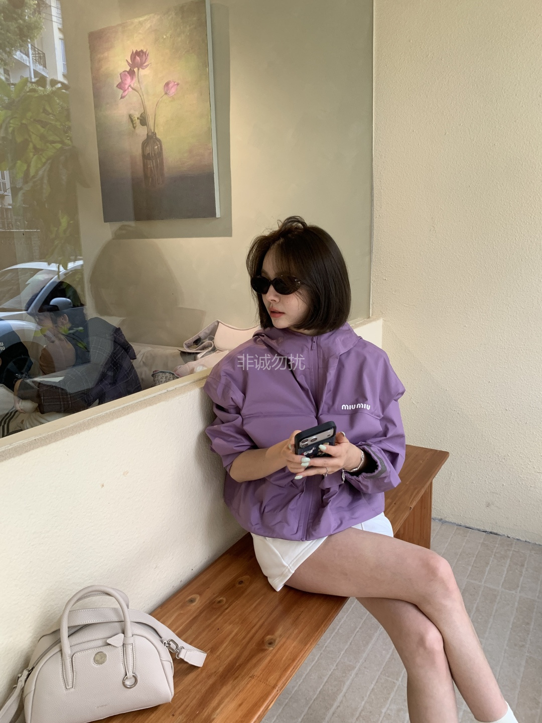 miu女士连帽高科技再生纤维面料冲锋衣上身好看百搭!