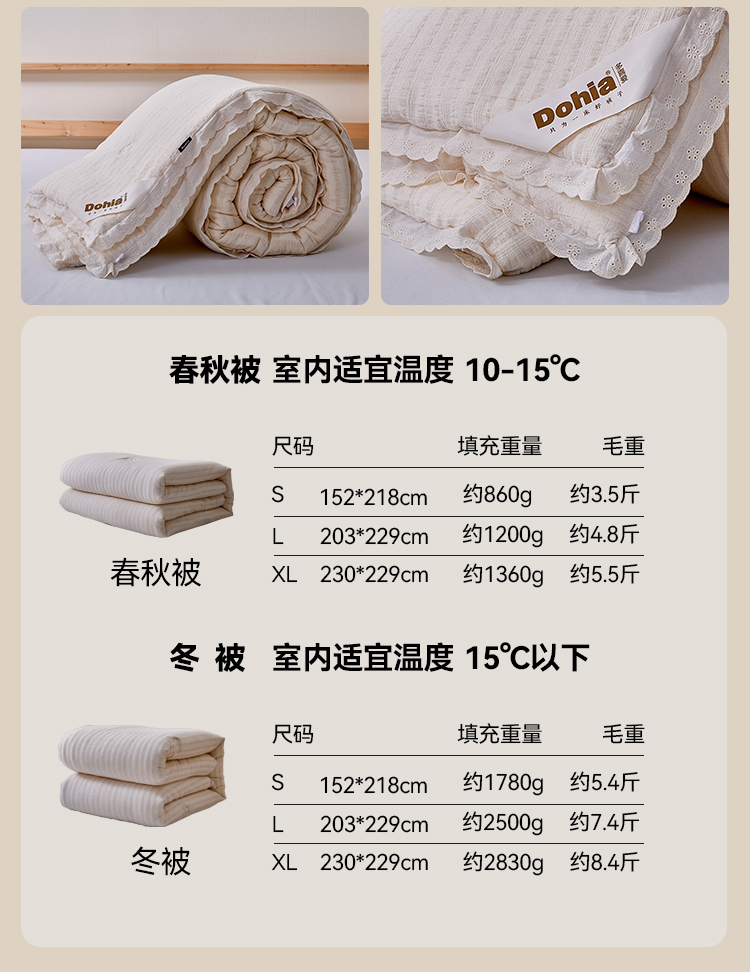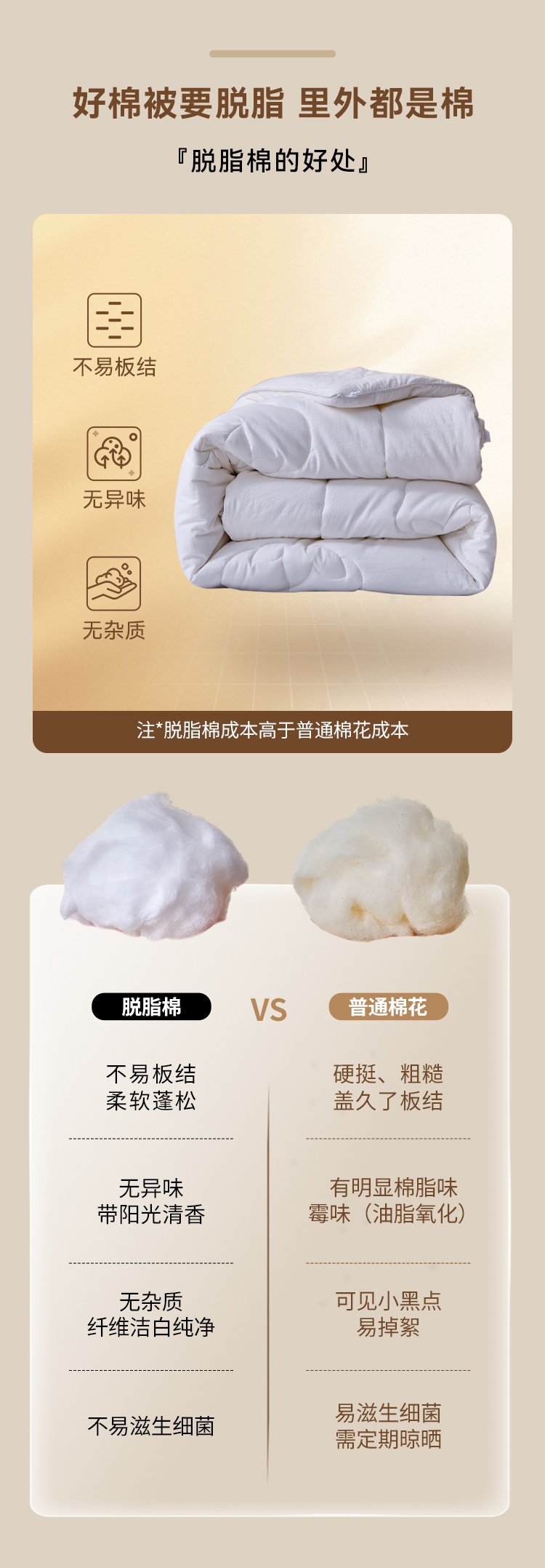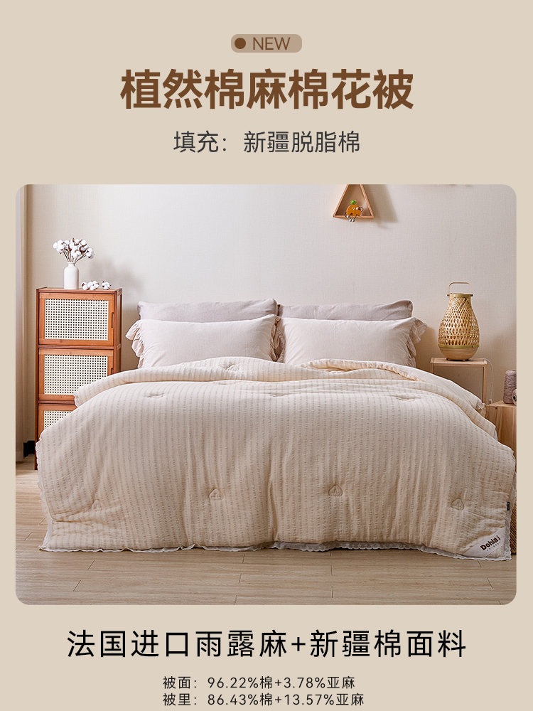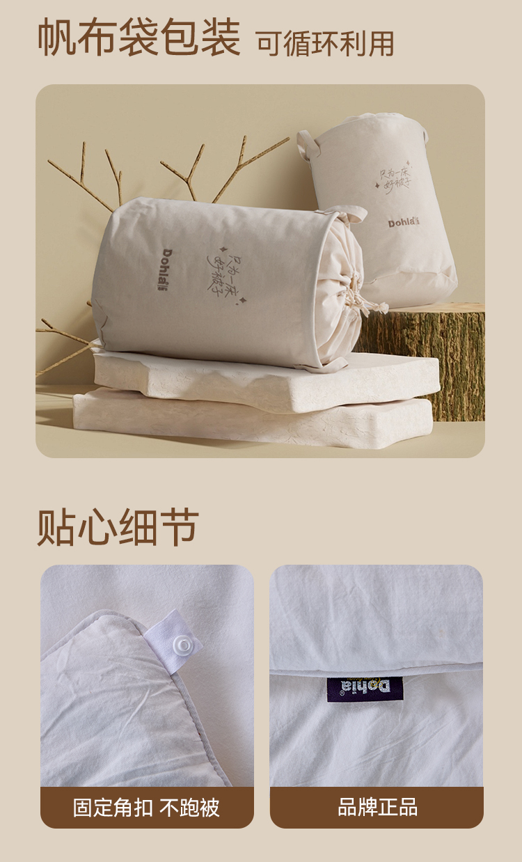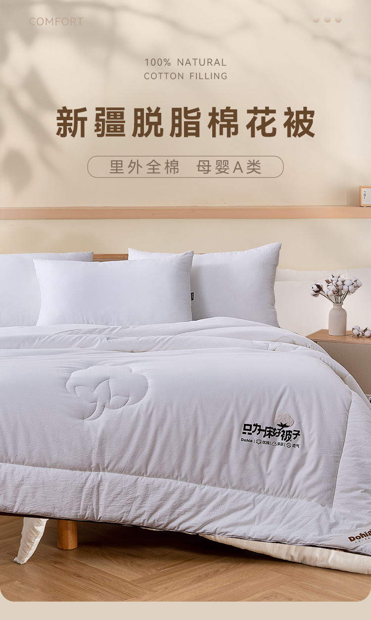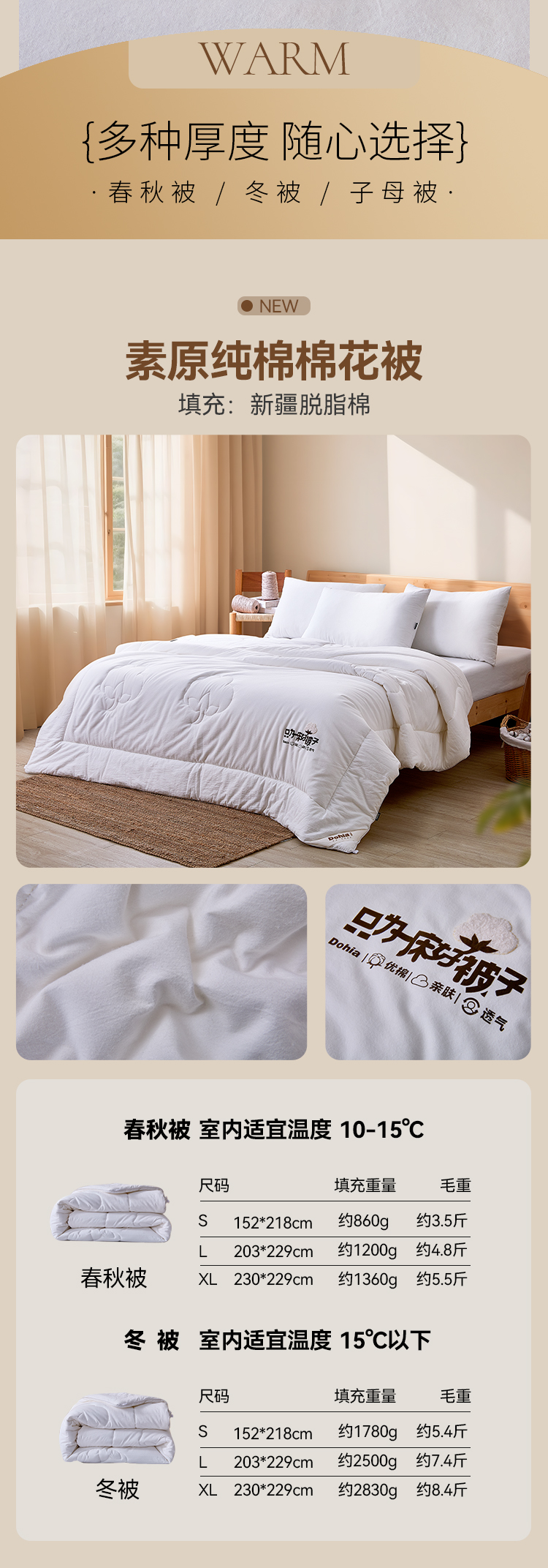 多喜爱 素原纯棉棉花加厚冬被203*229CM【全棉A类面料】【新疆脱脂棉填充】【蓬松柔然不板结】