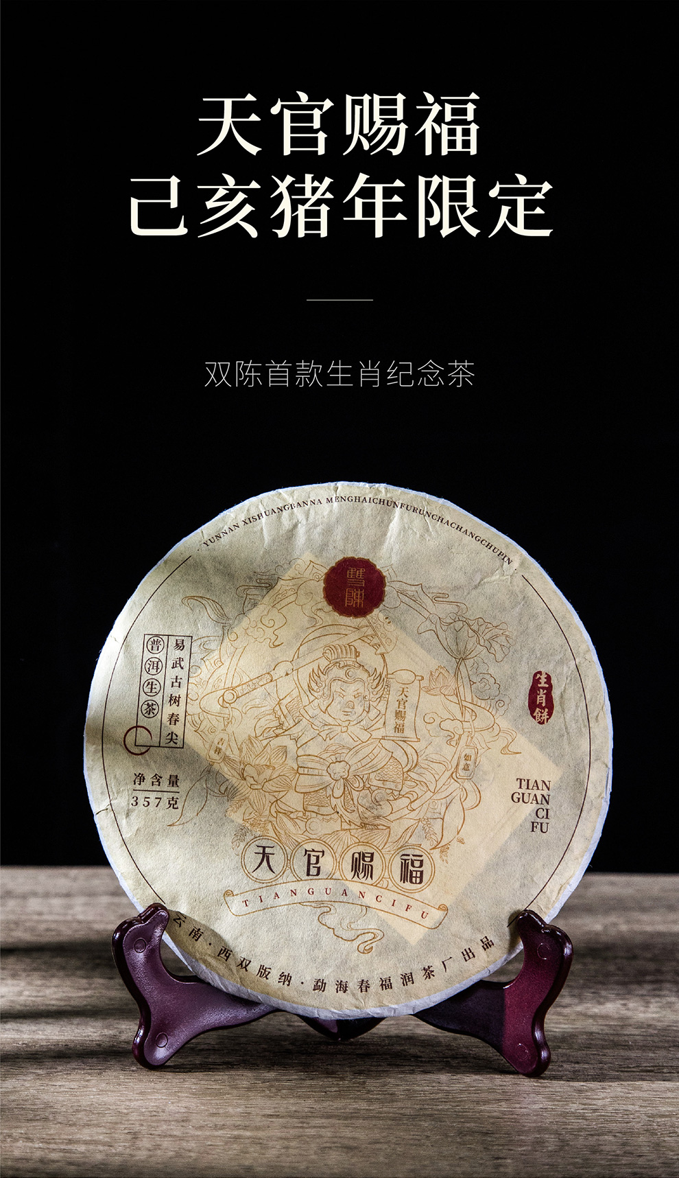 2019年生肖纪念茶天官赐福干仓普洱茶生茶饼茶1片357克