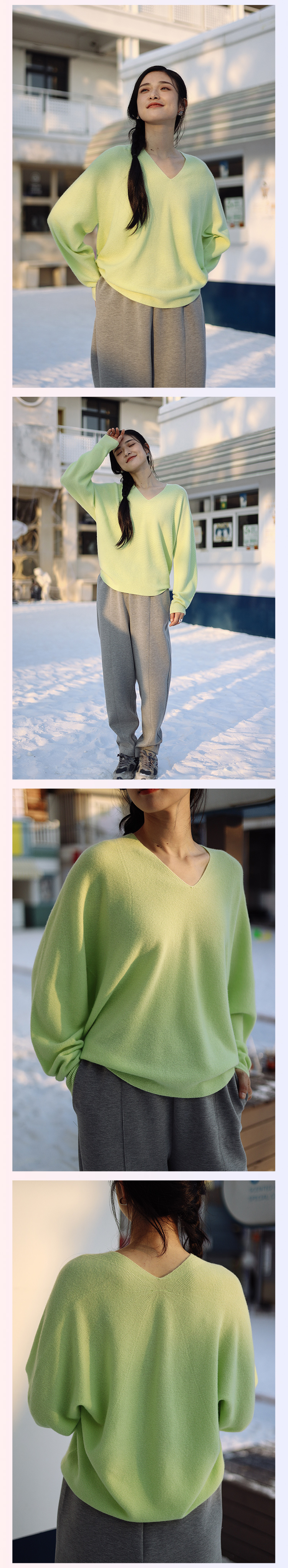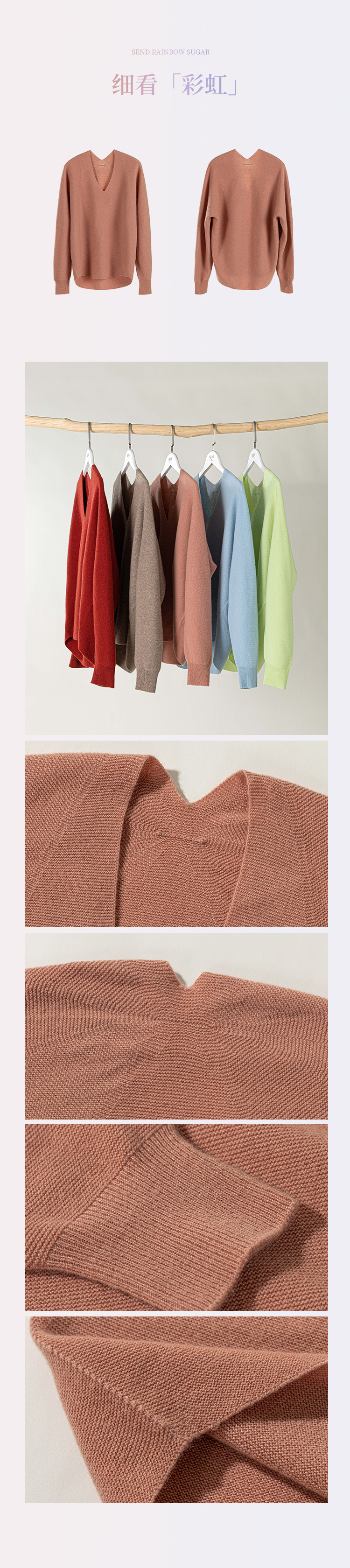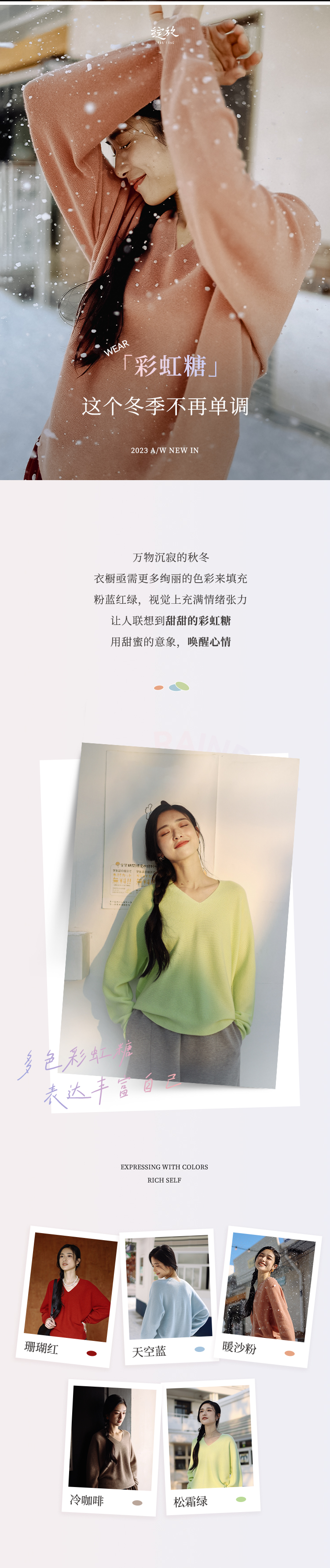 绽放795朵/彩虹羊绒衫2023冬季新款100%羊绒轻盈保暖V领套头毛衣