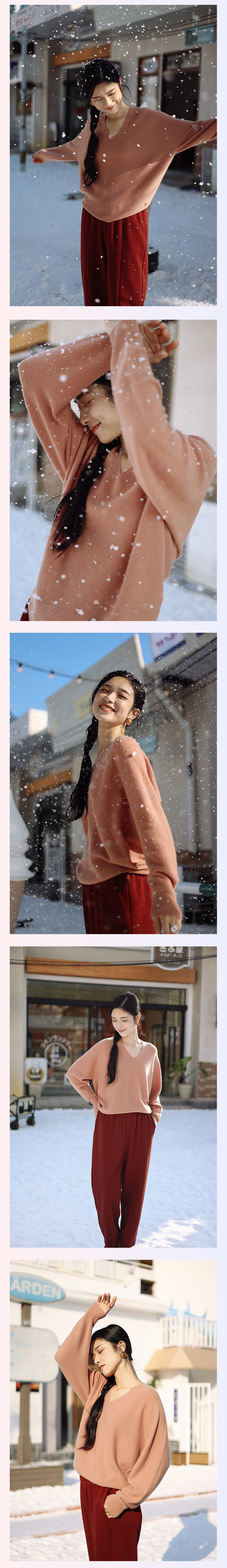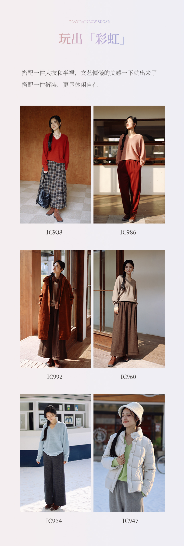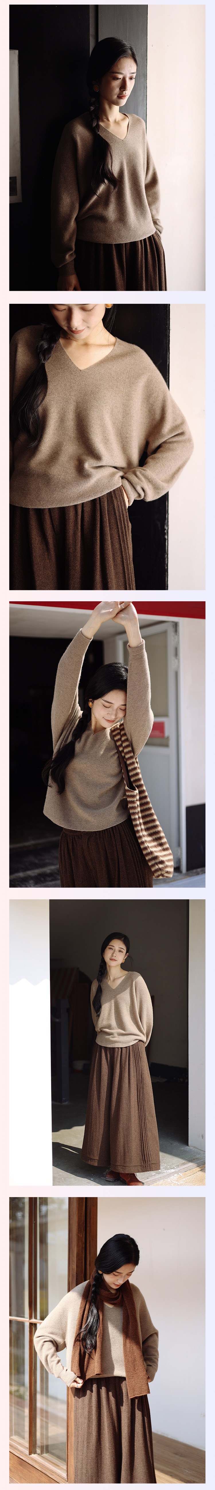 绽放795朵/彩虹羊绒衫2023冬季新款100%羊绒轻盈保暖V领套头毛衣