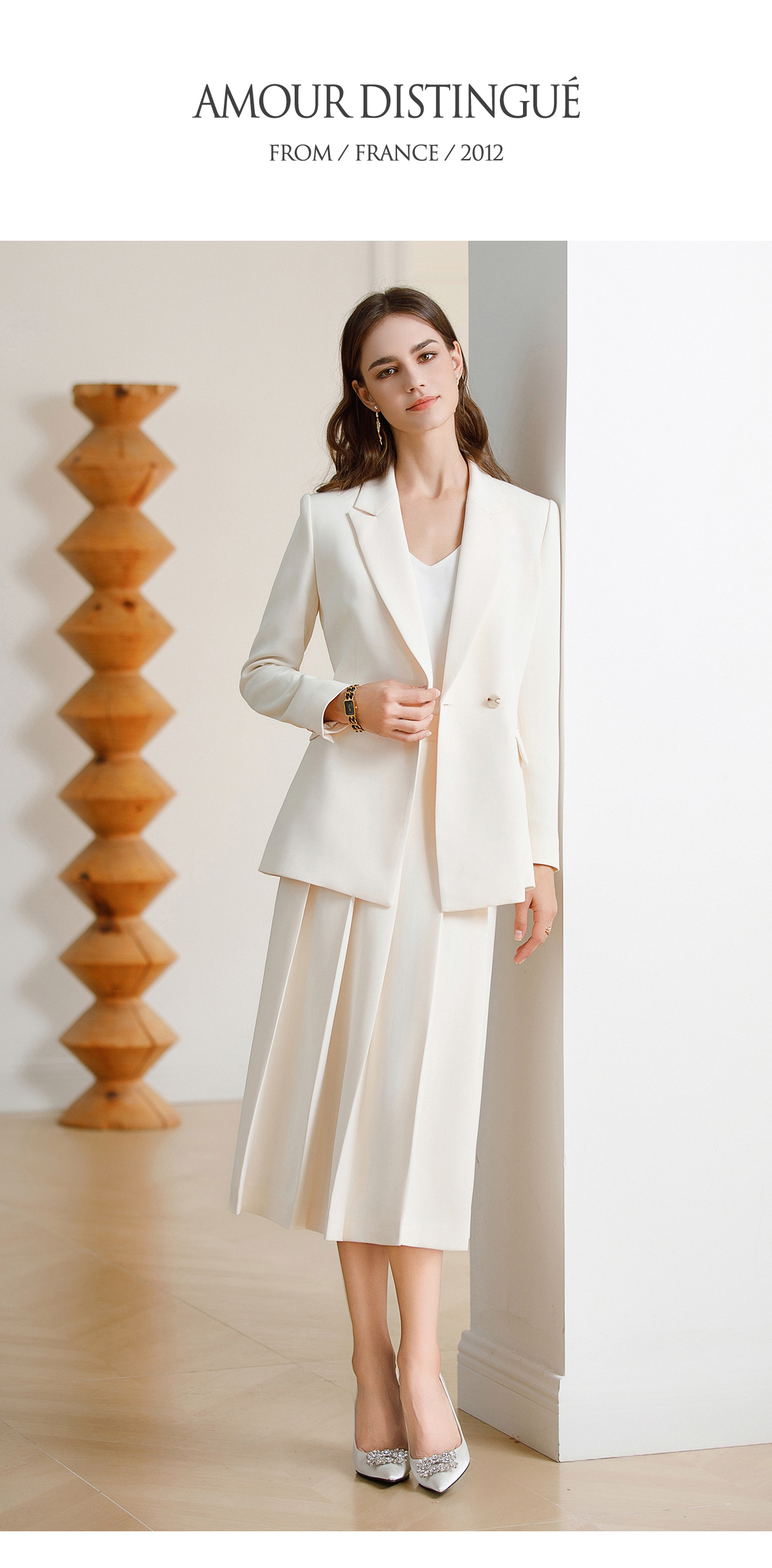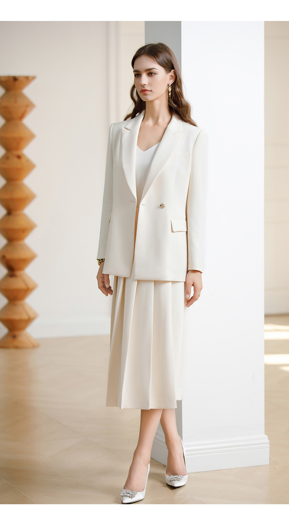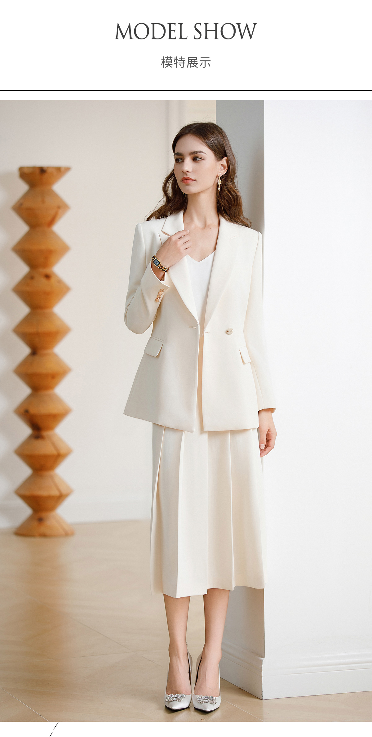 AD韩范西装套装女神范职业装2024早春新款白色西装外套中长百褶裙