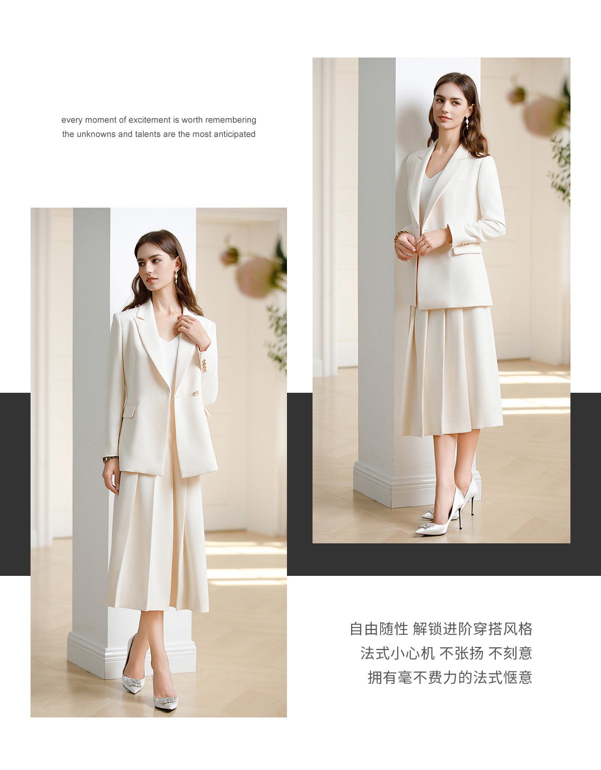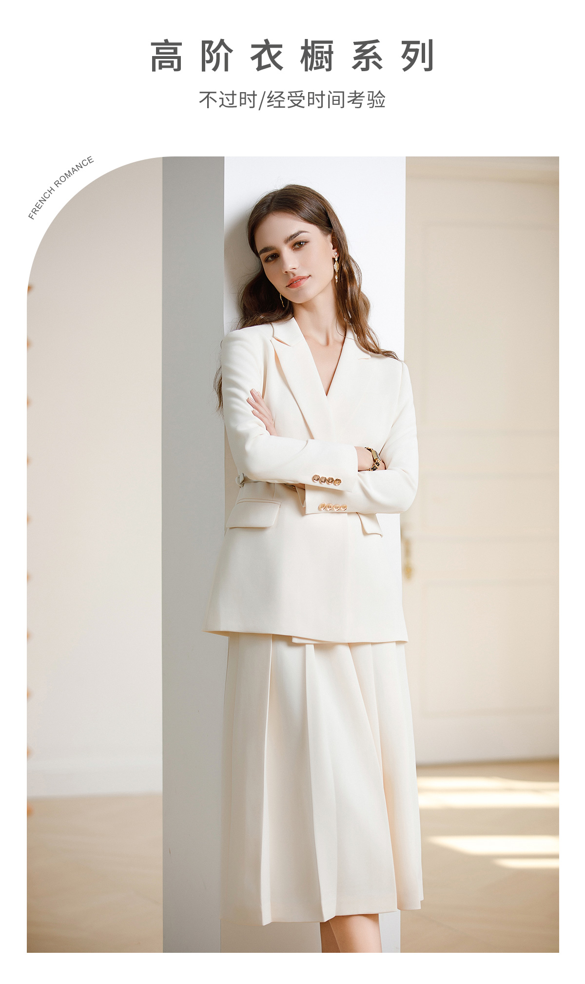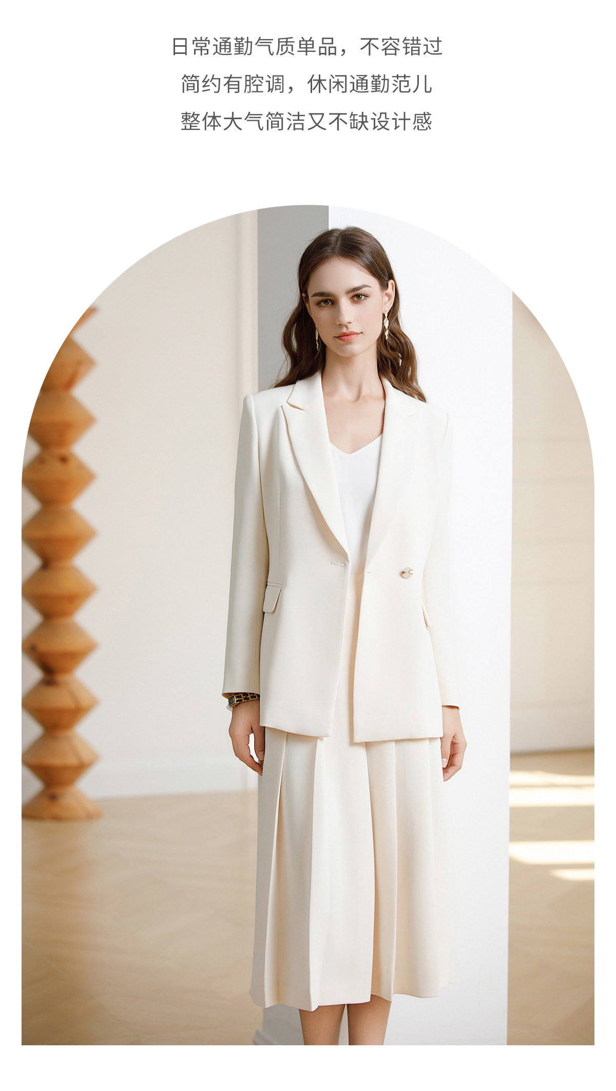AD韩范西装套装女神范职业装2024早春新款白色西装外套中长百褶裙