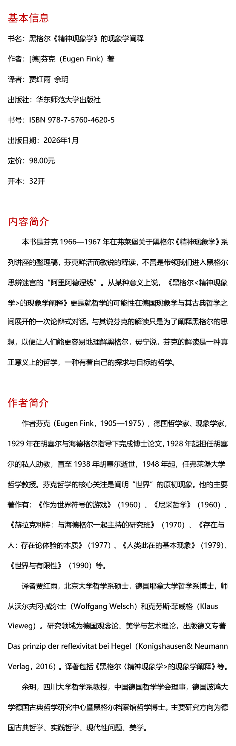 黑格尔《精神现象学》的现象学阐释 快与慢文丛 精装