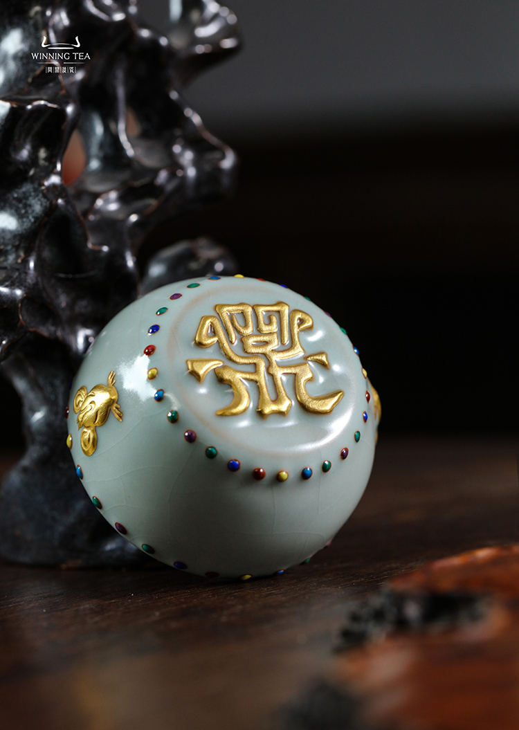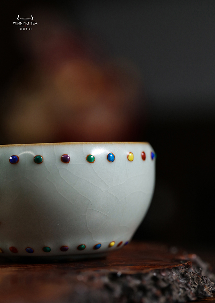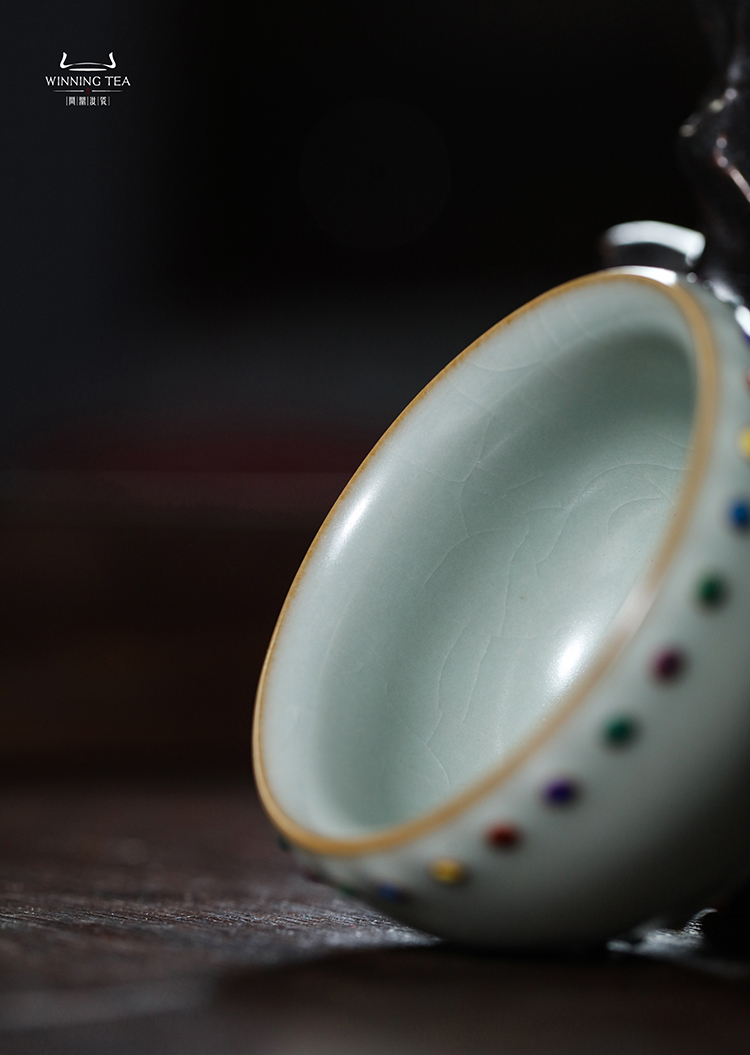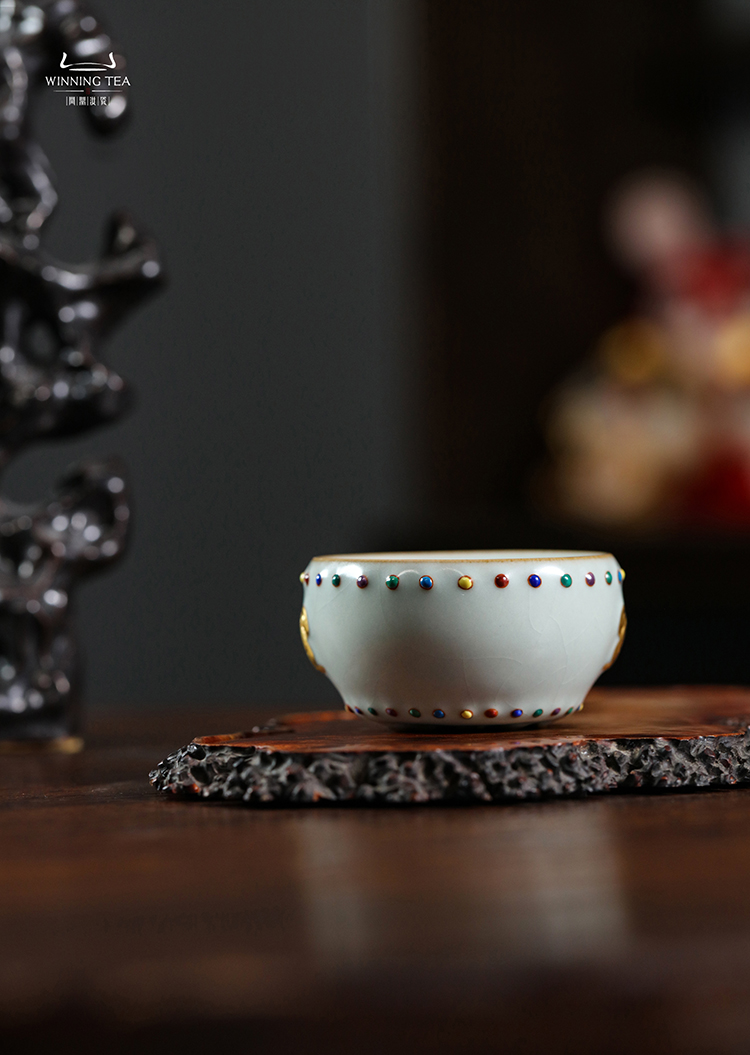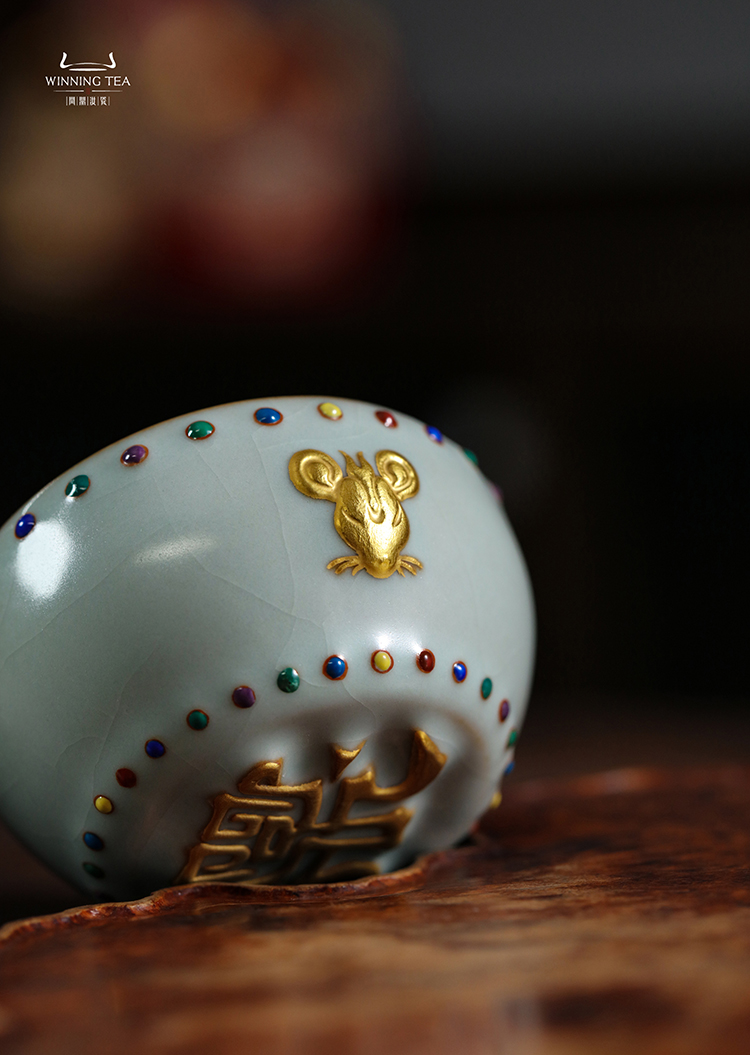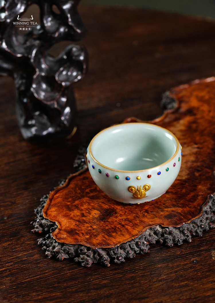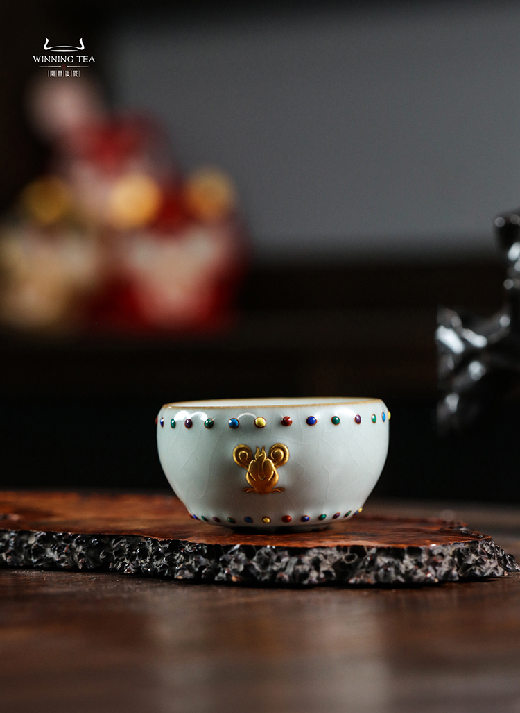 问鼎汝瓷鼎峰系列天青鼠首七宝战鼓杯