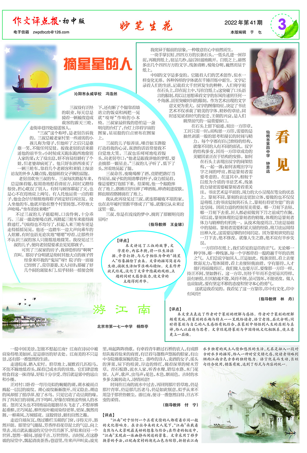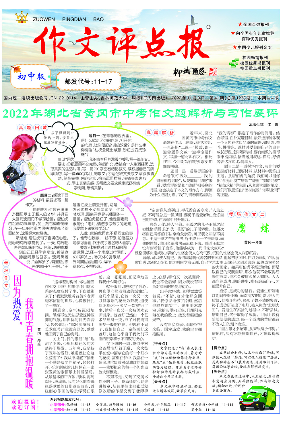 适合七到九年级学生阅读。紧跟教学进度,剖析作文技法,精选学生佳作,提供精品写作素材和阅读材料,提高初中生的语文素养和写作水平。