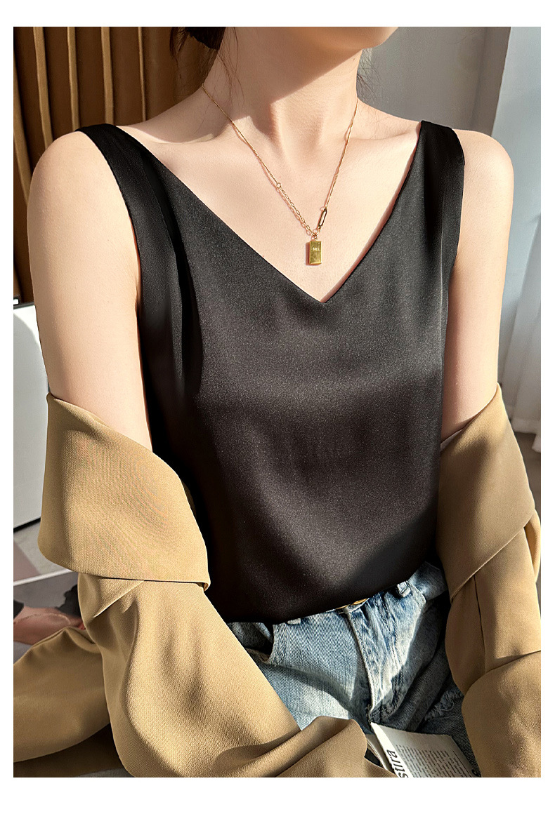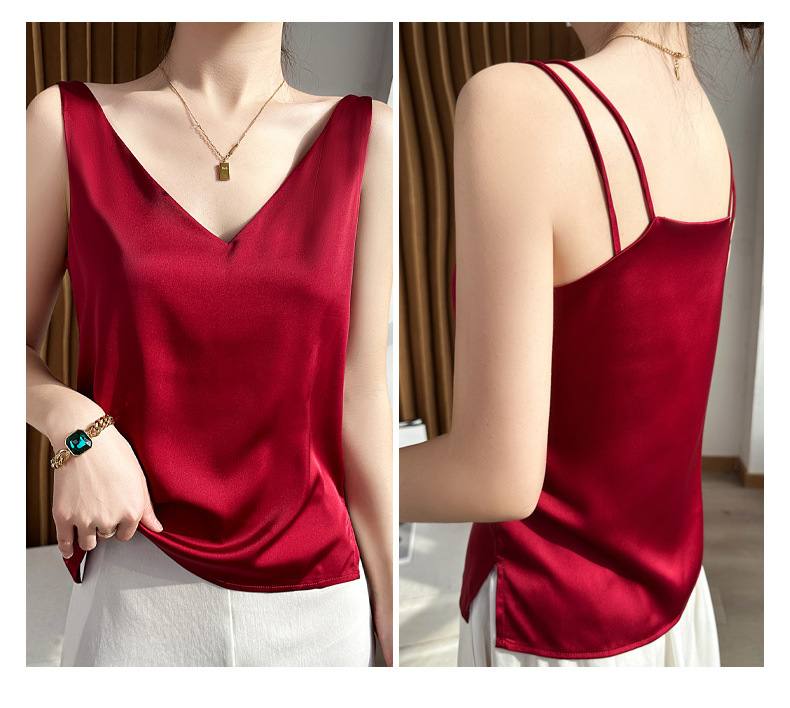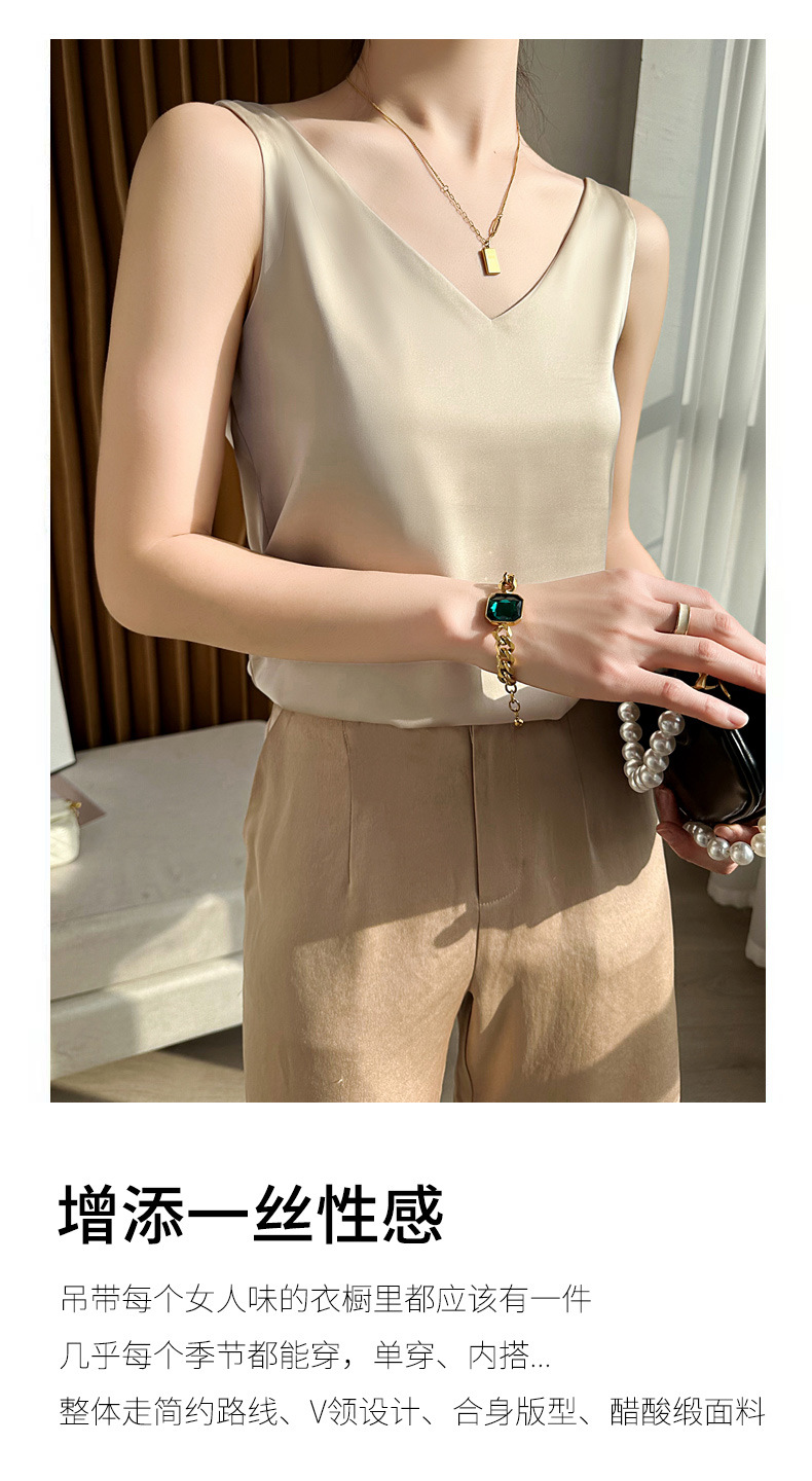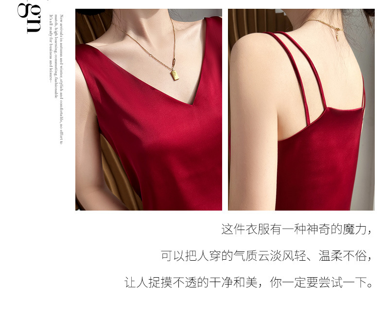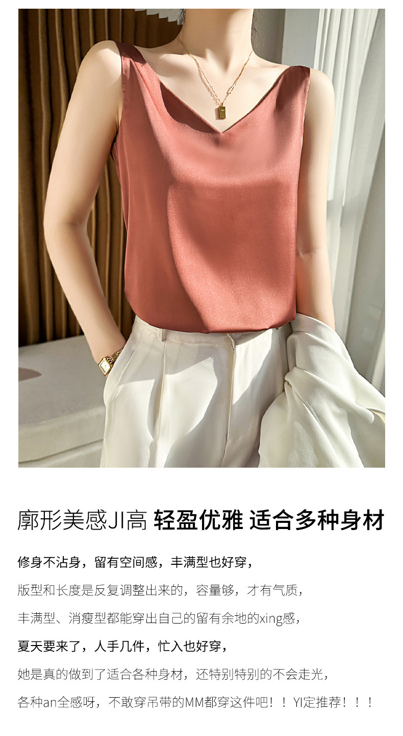 【内搭外穿小能手!夏装气质吊带背心】顺滑面料柔软舒适增添一丝性感,优雅真丝内搭短上衣女冰激凌色丝绸缎面外穿美背粉丝专属