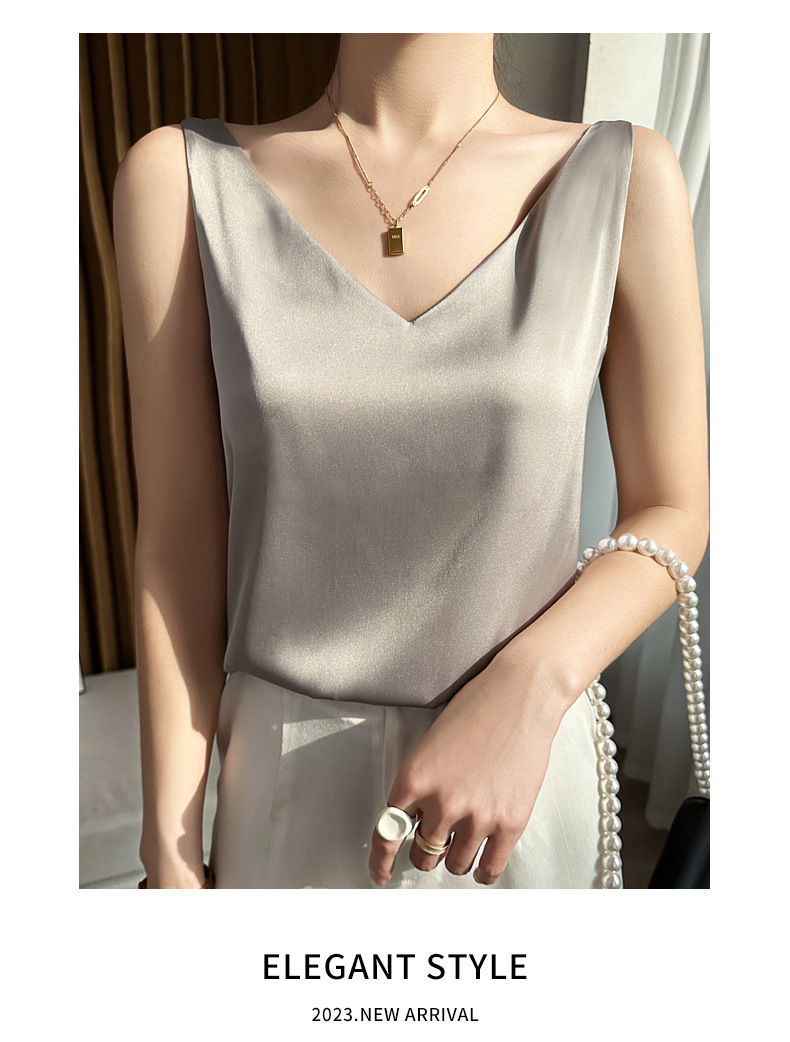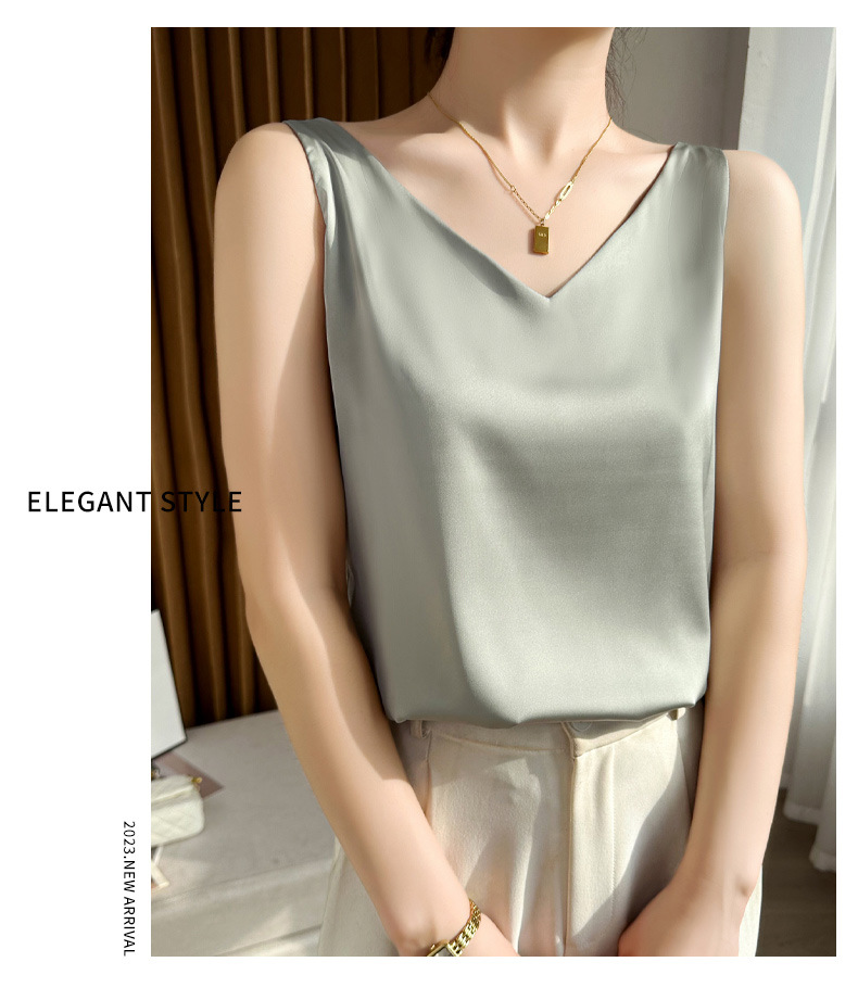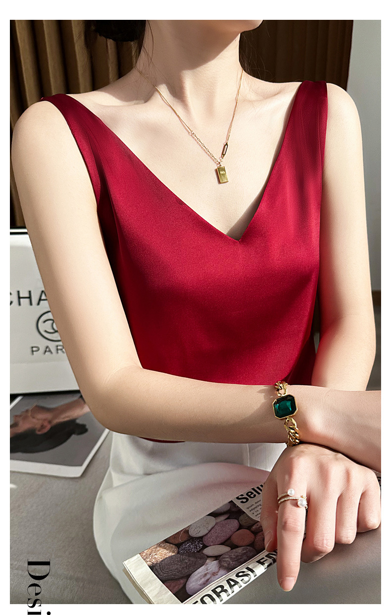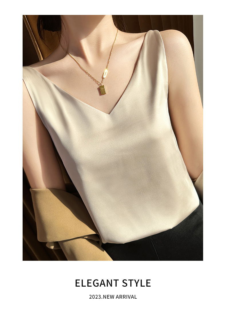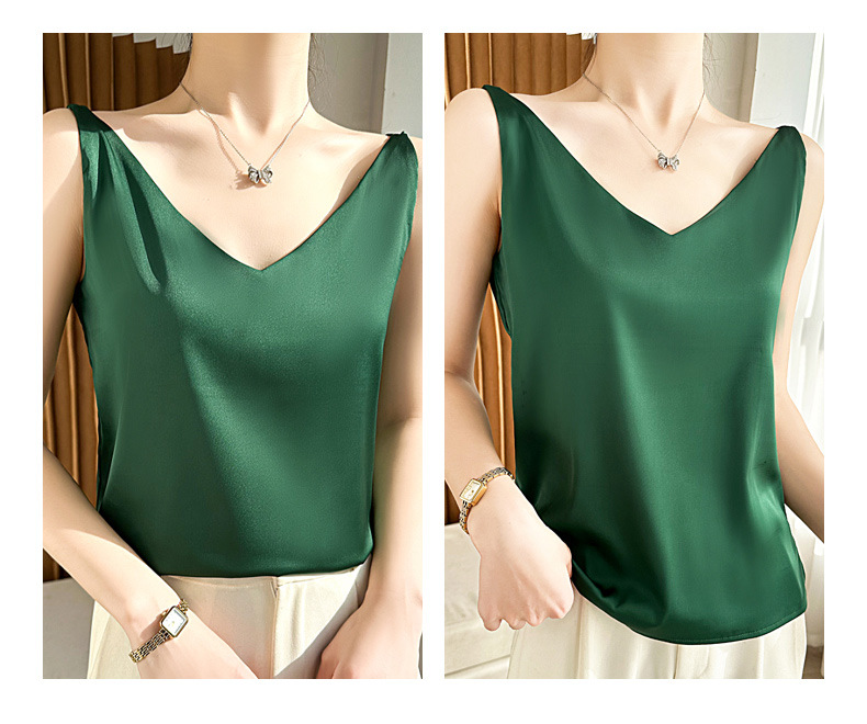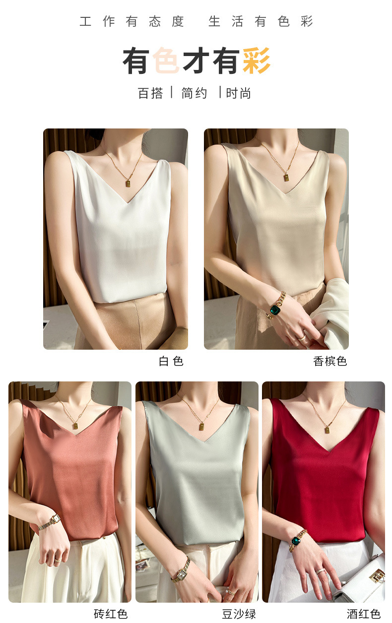 【内搭外穿小能手!夏装气质吊带背心】顺滑面料柔软舒适增添一丝性感,优雅真丝内搭短上衣女冰激凌色丝绸缎面外穿美背粉丝专属