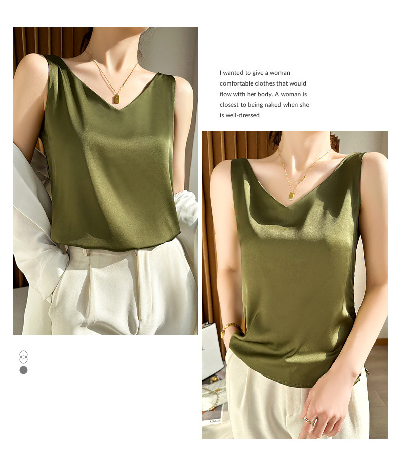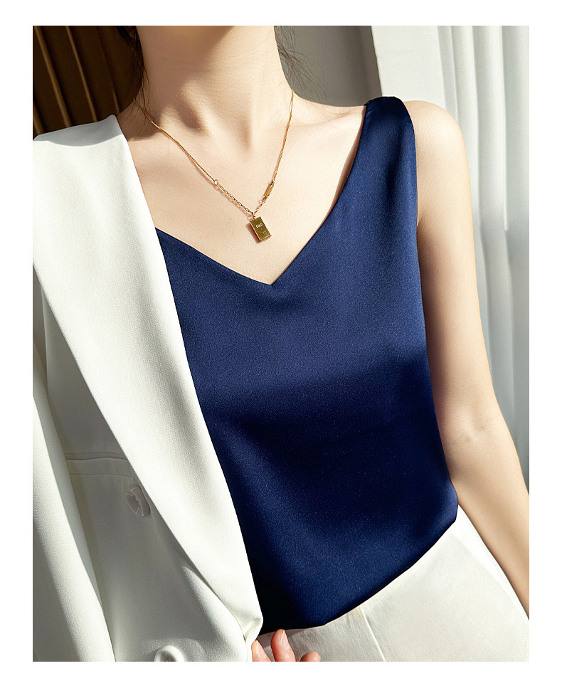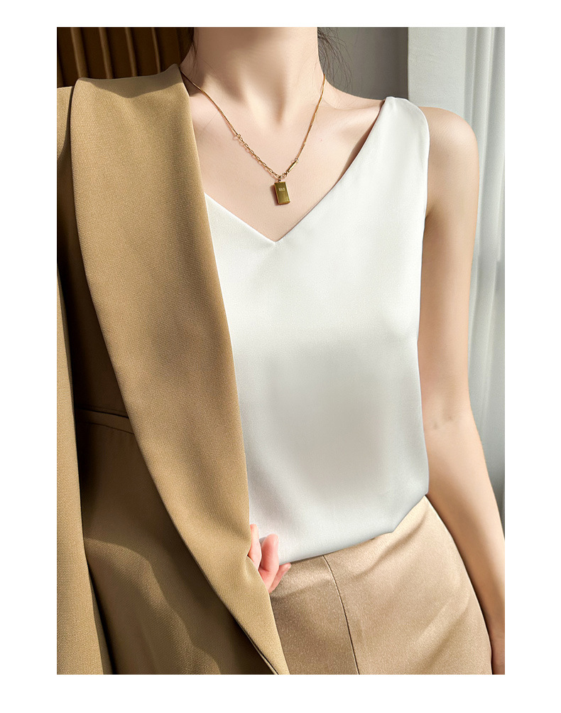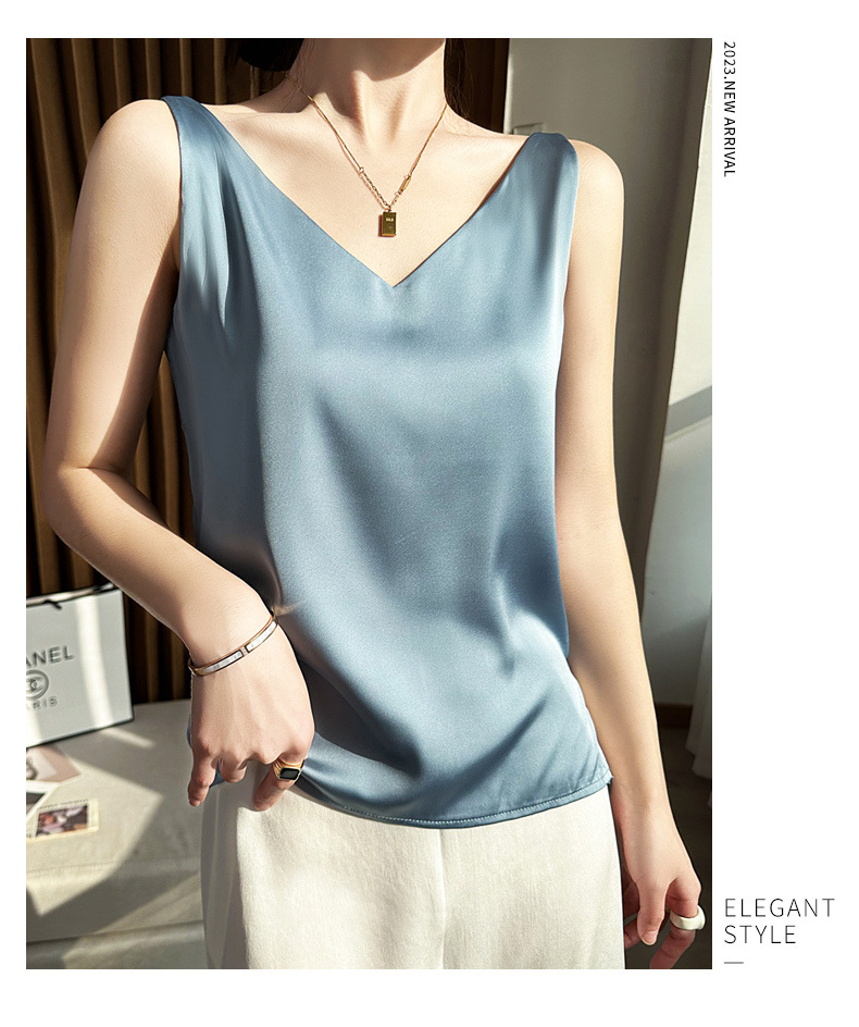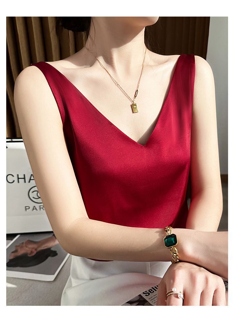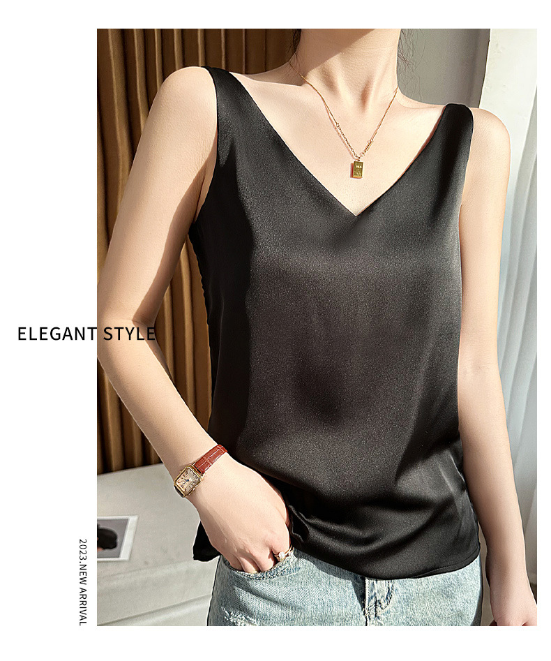 【内搭外穿小能手!夏装气质吊带背心】顺滑面料柔软舒适增添一丝性感,优雅真丝内搭短上衣女冰激凌色丝绸缎面外穿美背粉丝专属
