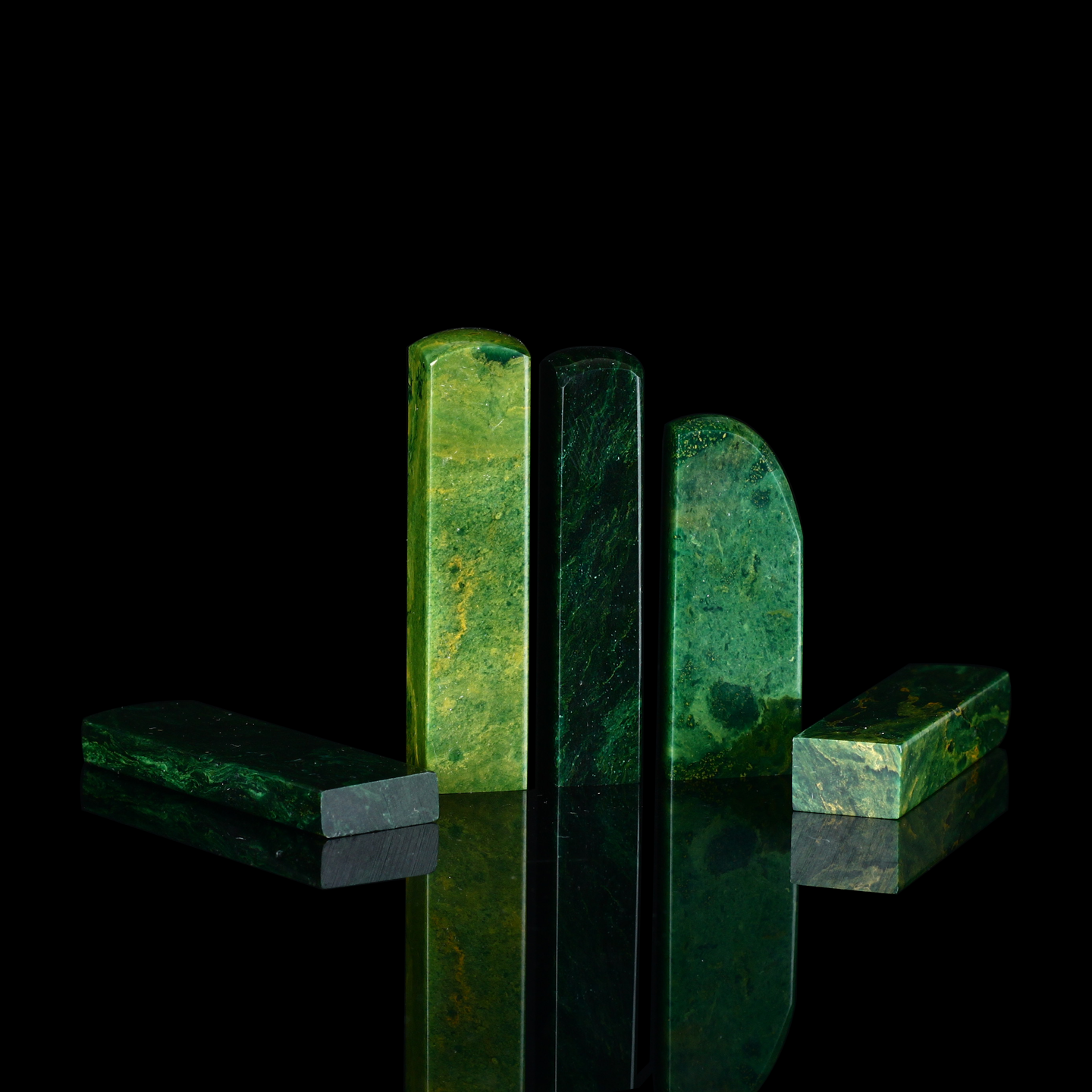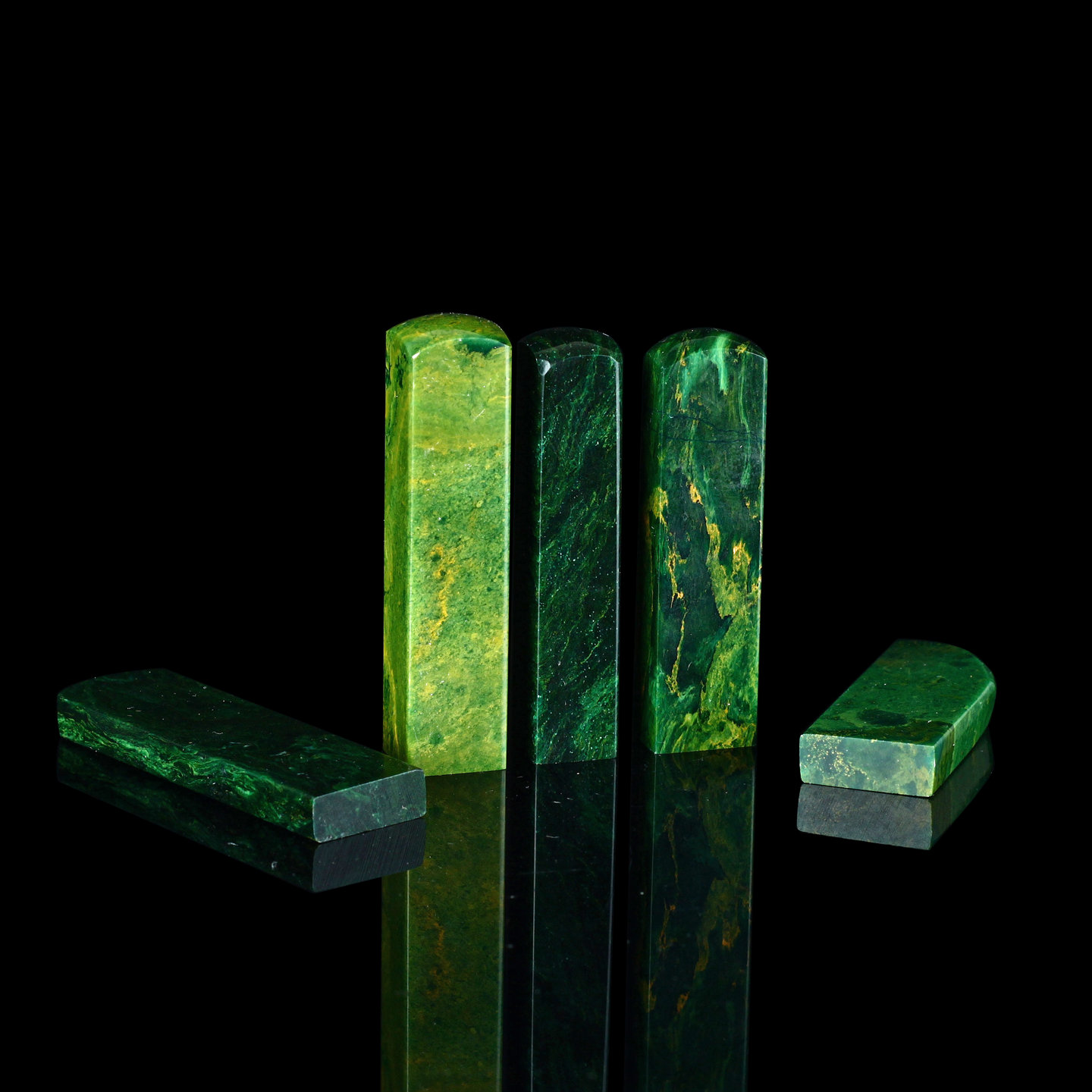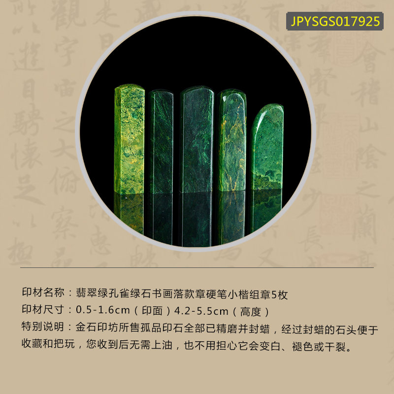孤品17925翡翠绿孔雀绿石书画落款章硬笔小楷组章5枚-大小不一