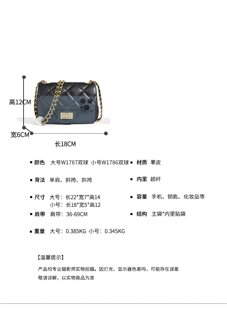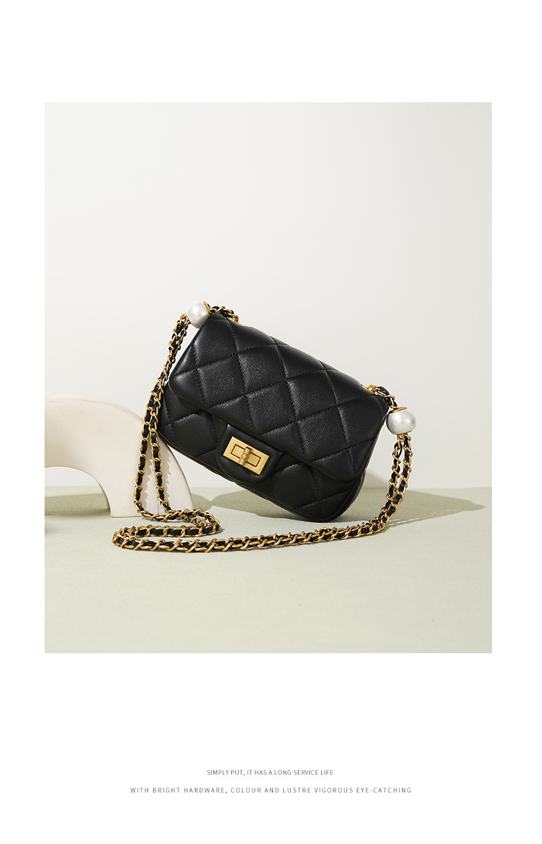 【预售3天】菱格双珍珠方胖子包2025新款女包斜挎包春夏链条包W1786