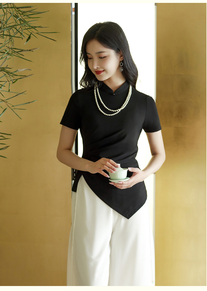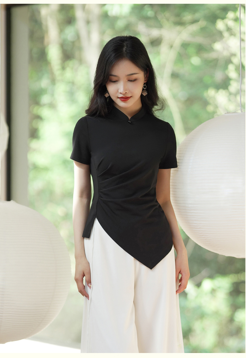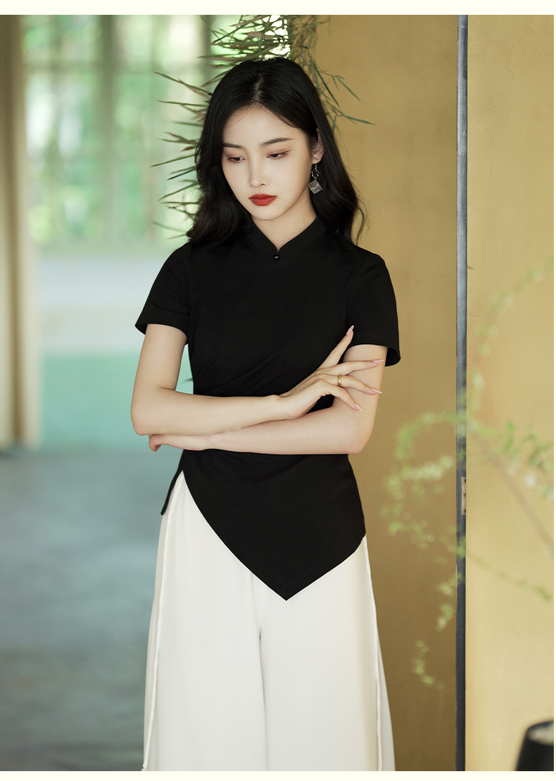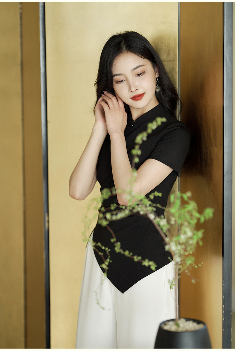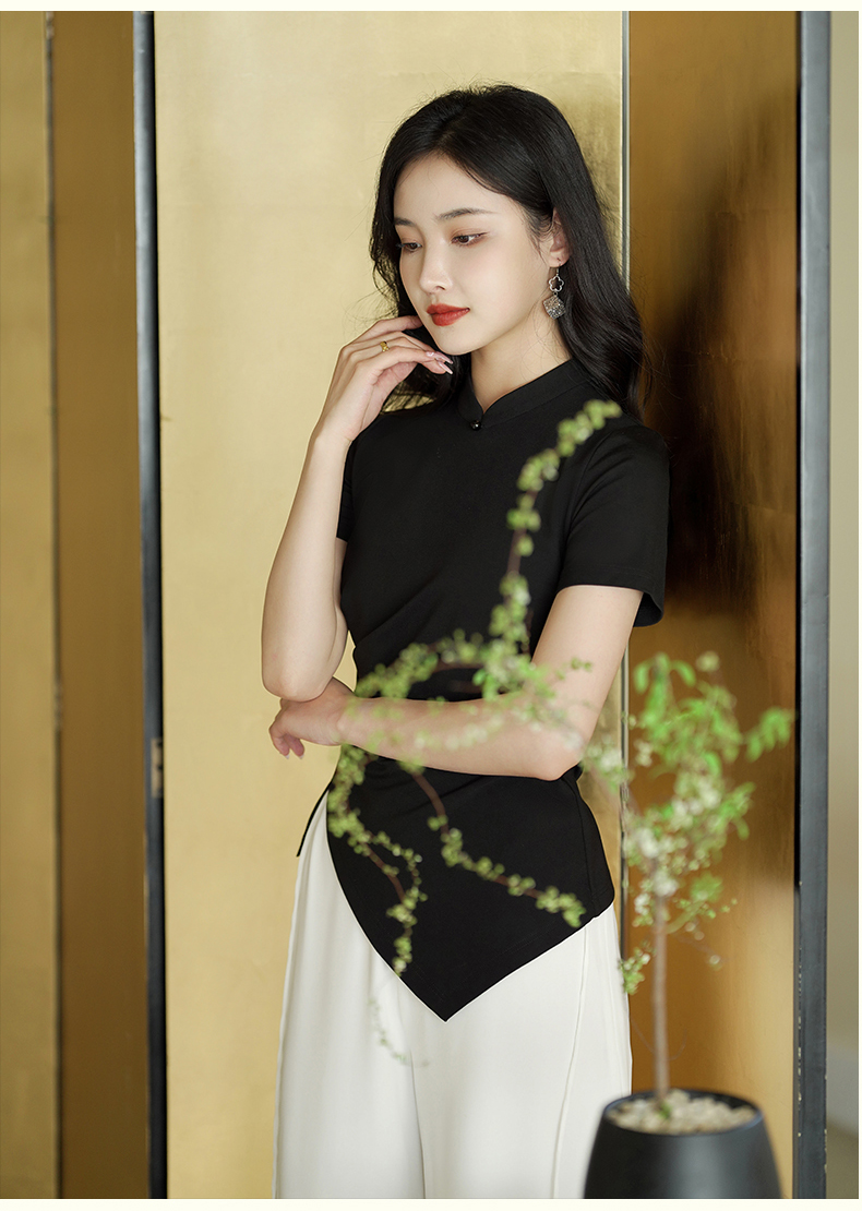 逸红颜云川2025夏季新款针织旗袍上衣单层中式立领短袖透气舒适