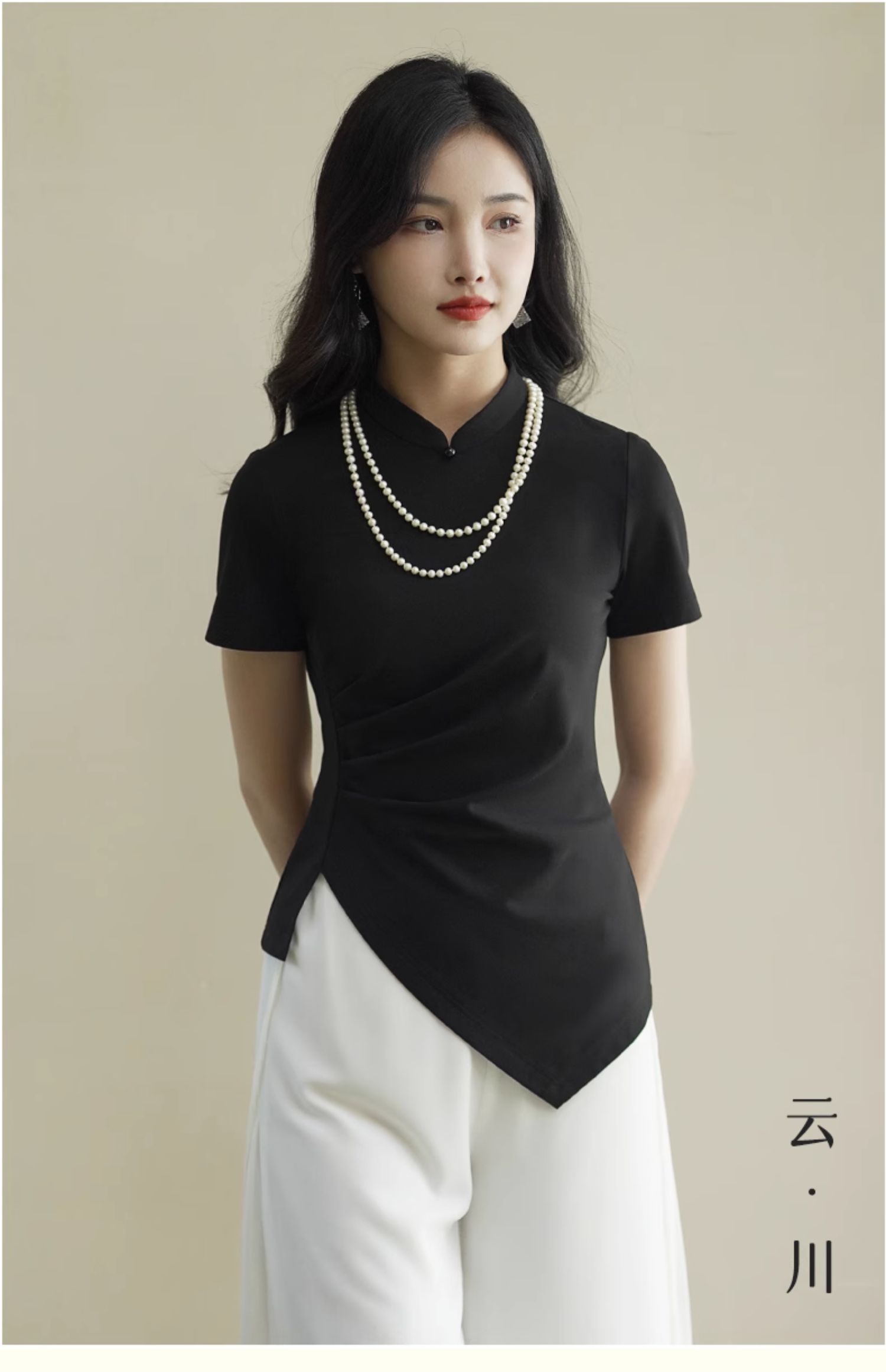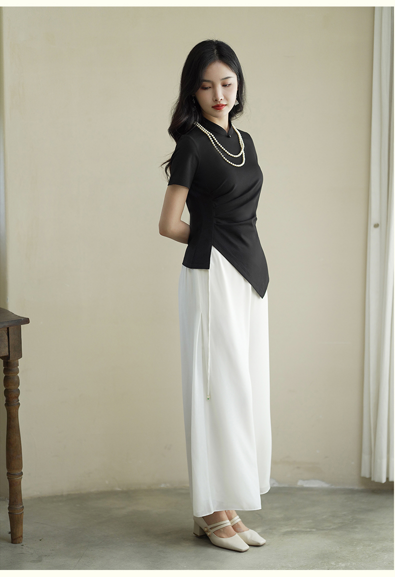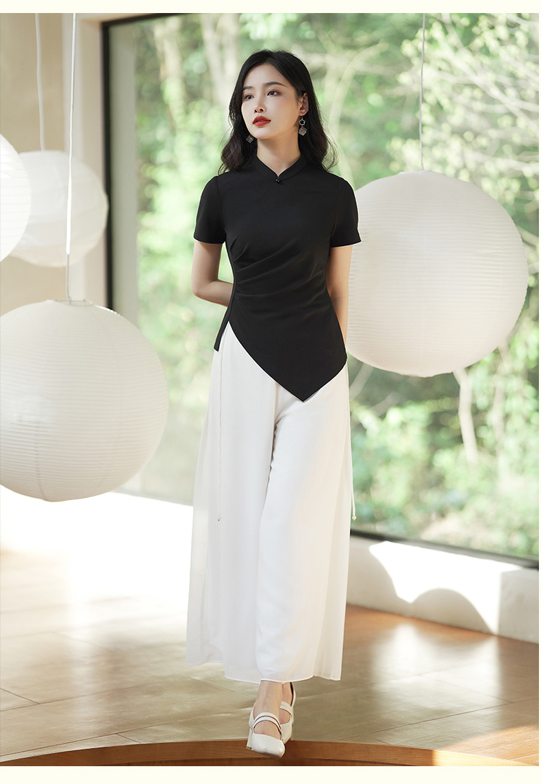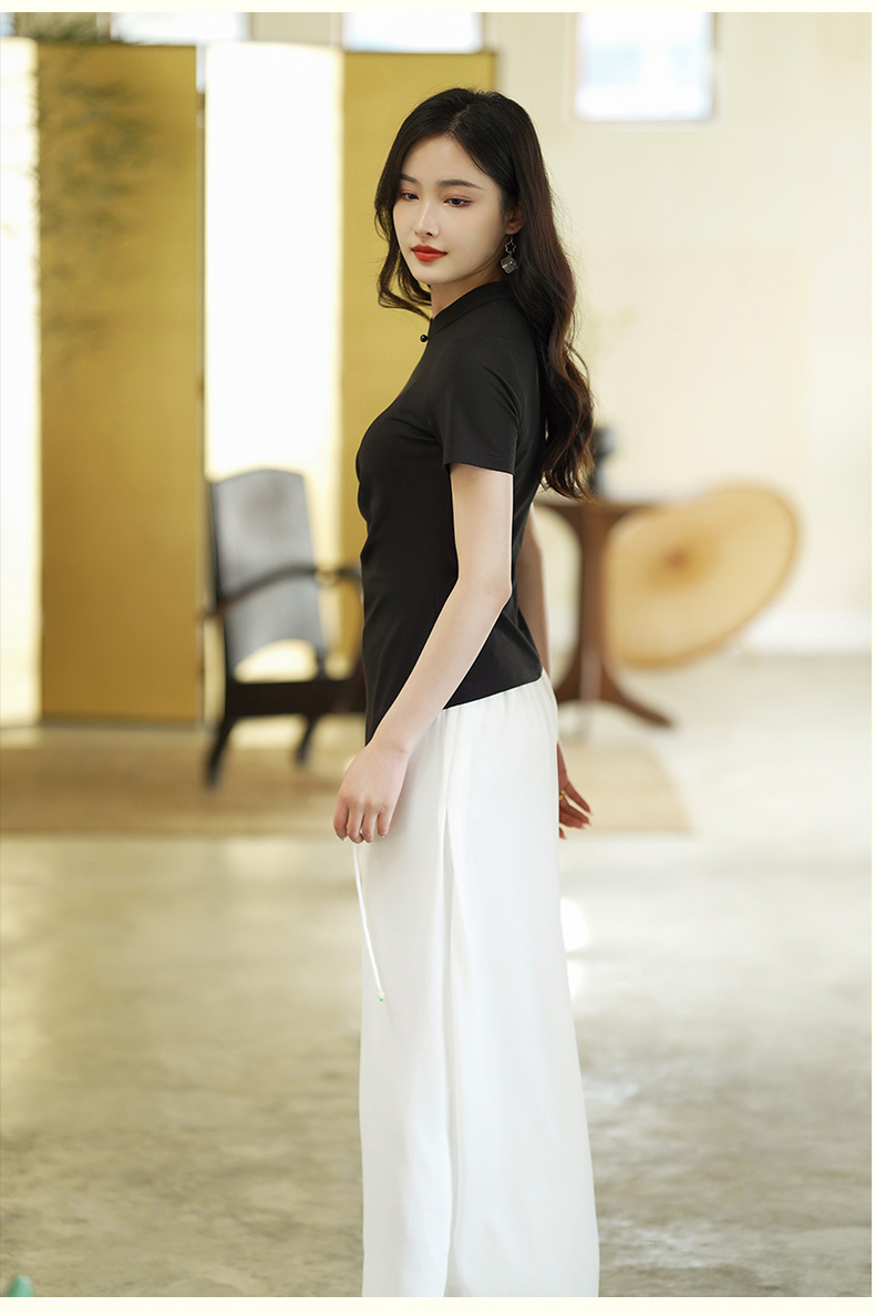 逸红颜云川2025夏季新款针织旗袍上衣单层中式立领短袖透气舒适
