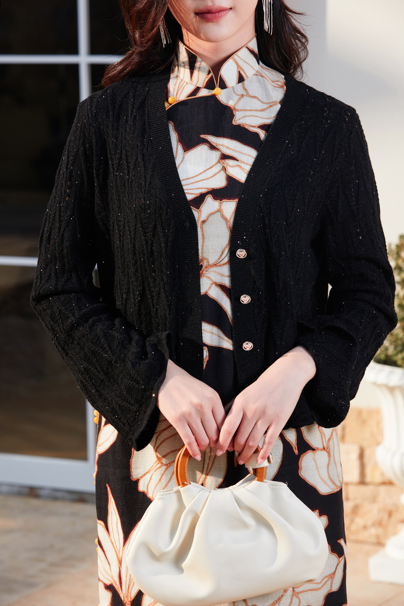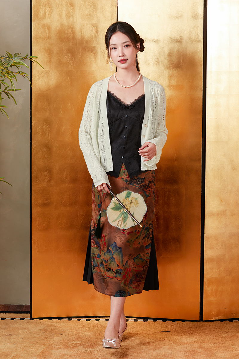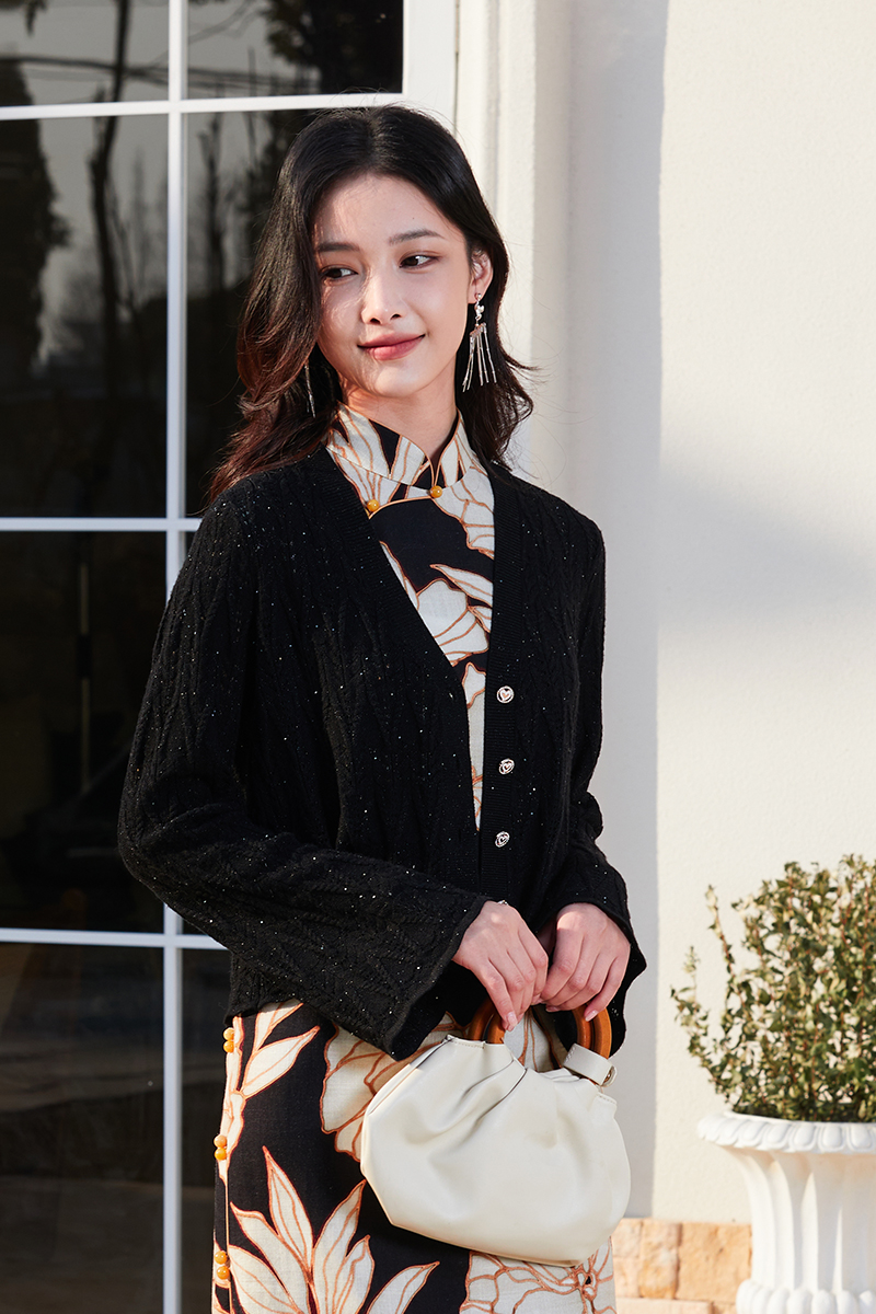 墨黑当属徽墨研出的夜色,亮片是砚池里未干的星斗,配条素缎裙便成了黄公望笔下的远山黛。