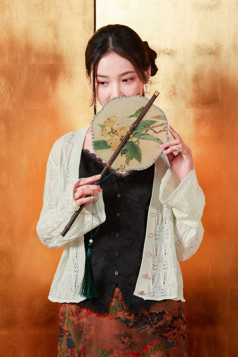 绞花镂空原是照着老窗棂的冰裂纹描的,透进三寸春风两寸光,正适合裹着晨露的杨柳天。