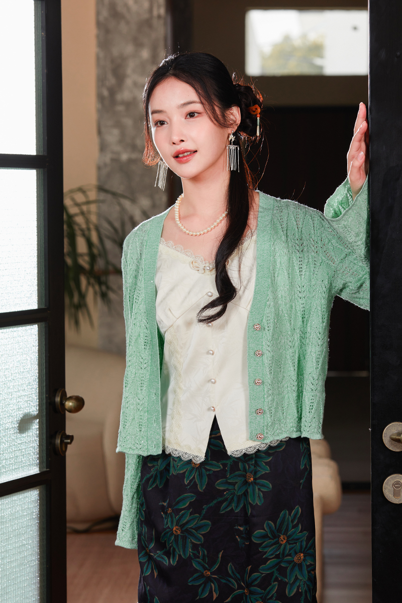 瓷绿款该去杭州茶寮里穿的,领口晃着龙井新芽的翠,衣摆扫过青石阶上苔痕,连倒影都染着西子湖的水汽。春路雨添花,花动一山春色。(强烈推荐~!!!)