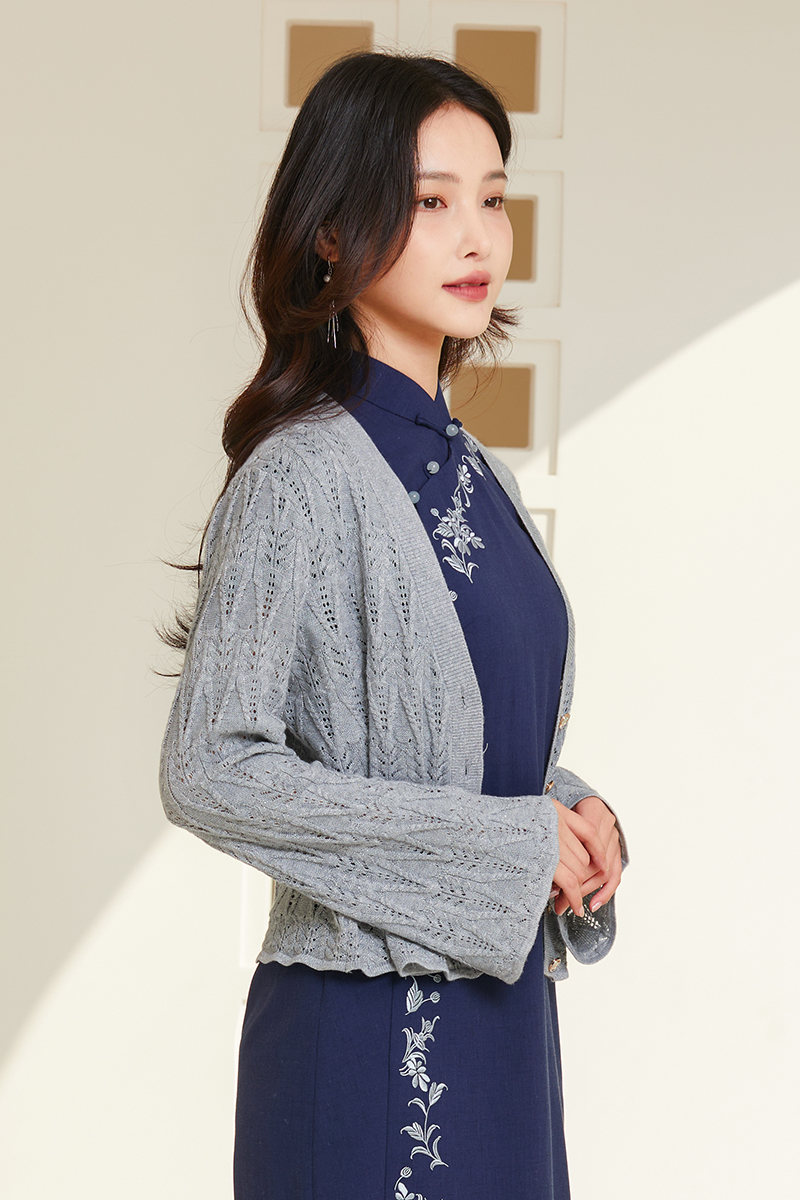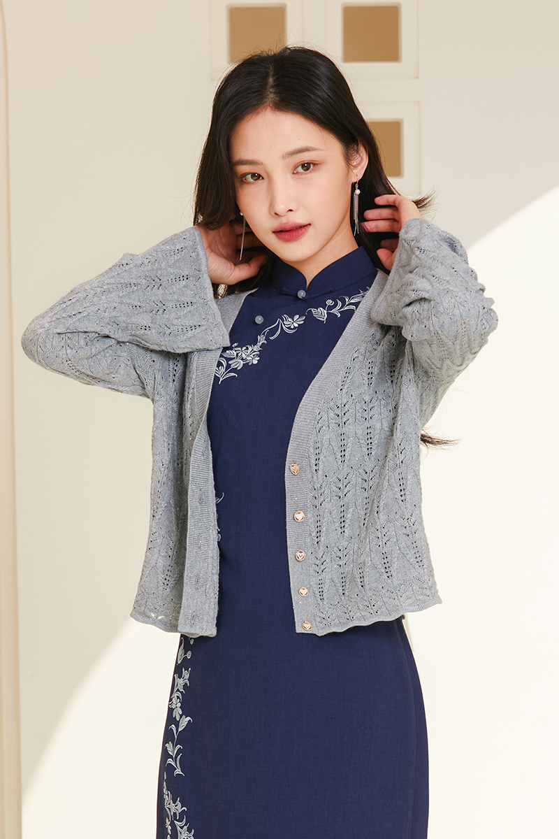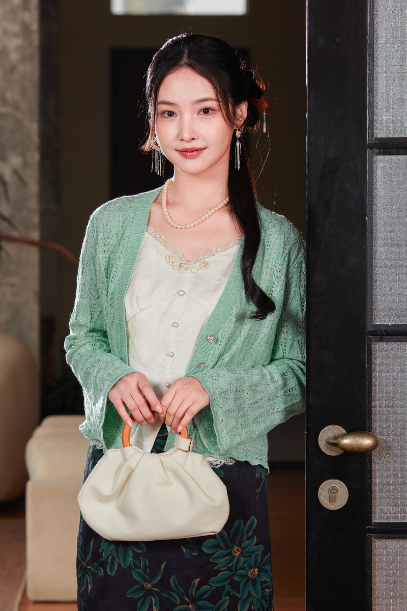 通勤路上它是舒适的呵护,咖啡厅里它是温软的云衾;待到玉兰花开时,随意解开两粒扣子,便是苏东坡词里那句“软草平莎过雨新”的活注解。