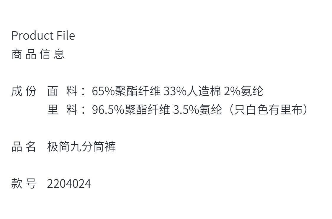 冬日黎明、New Look显瘦气质时尚通勤 极简休闲九分筒裤 2204024
