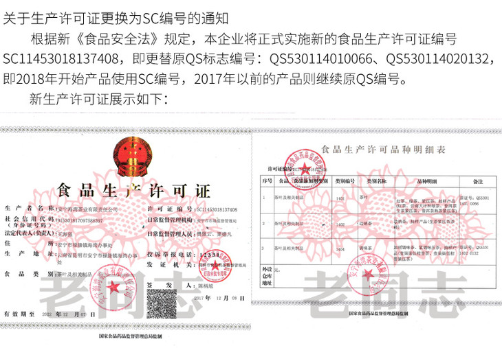 普洱生茶 老同志 2018年易武正山麻黑生茶 500g