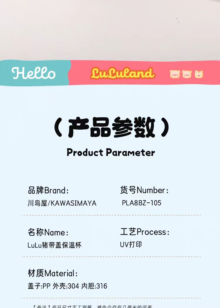 4楼Eubelle欧蓓 川岛屋&lulu猪联名 保温杯300ml 办公室咖啡杯不锈钢 活动价:69元