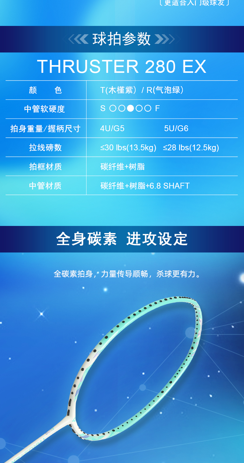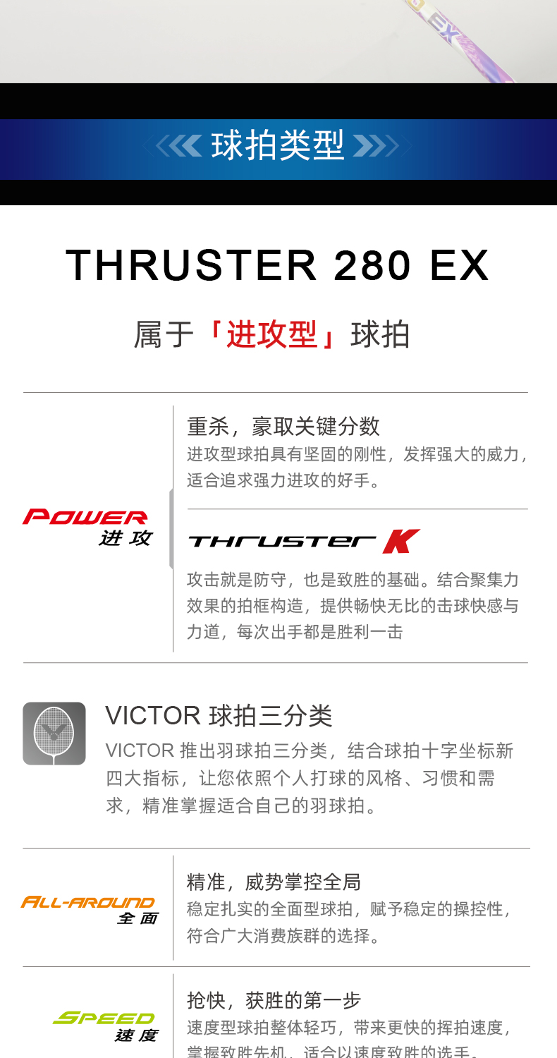 VICTOR威克多羽毛球拍单拍TK-280EX全碳素初学入门进攻型可拉高磅球拍 TK-280 EX