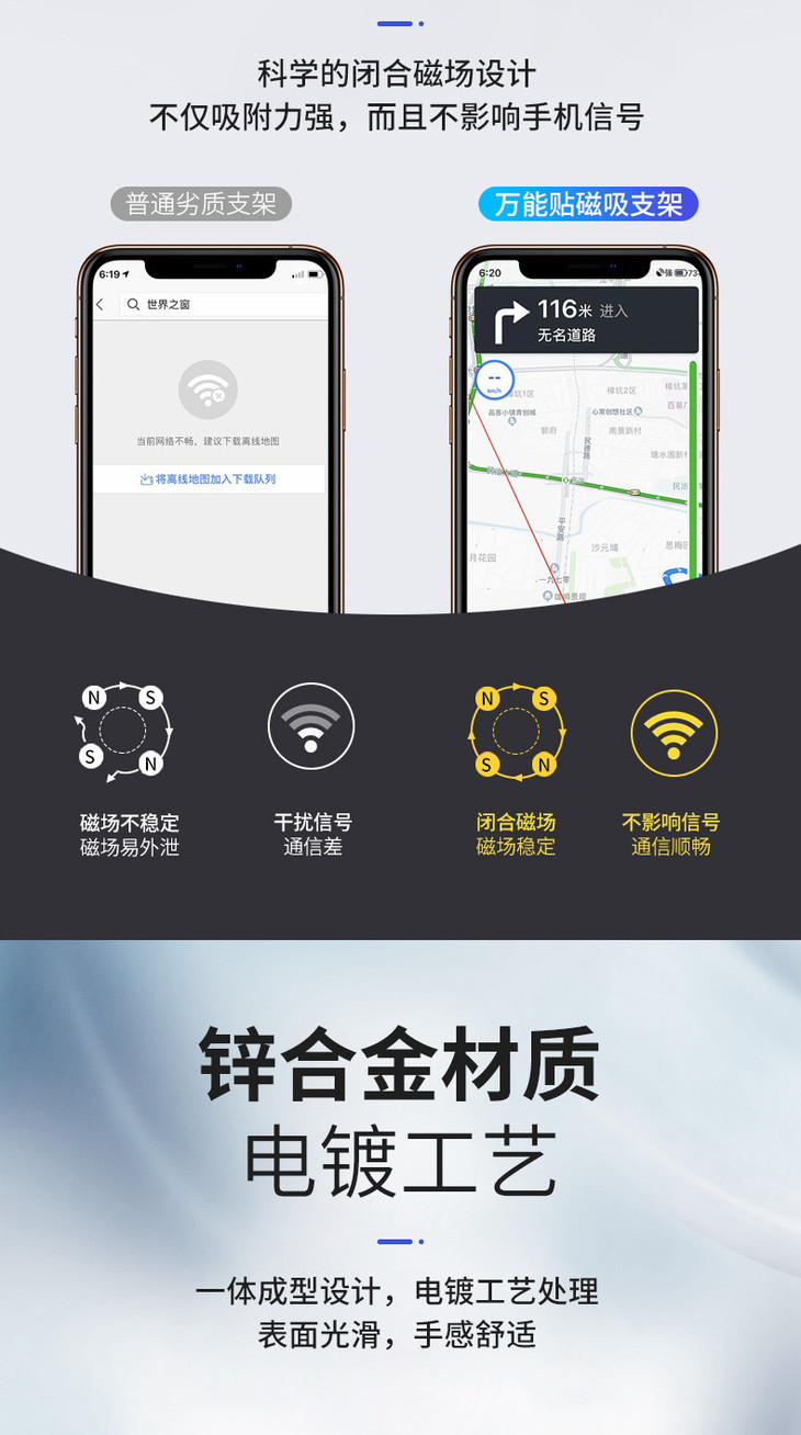 【2个赠送29元纳米胶贴】爱丽新幻影 车载导航磁吸支架 汽车方向盘仪表台黏贴式磁吸手机支架