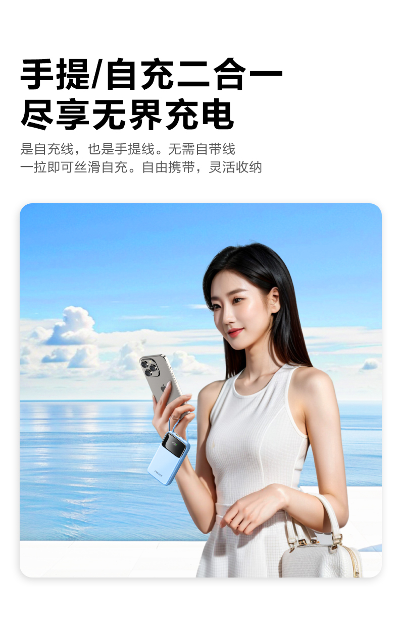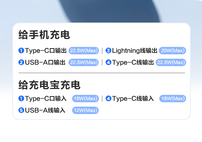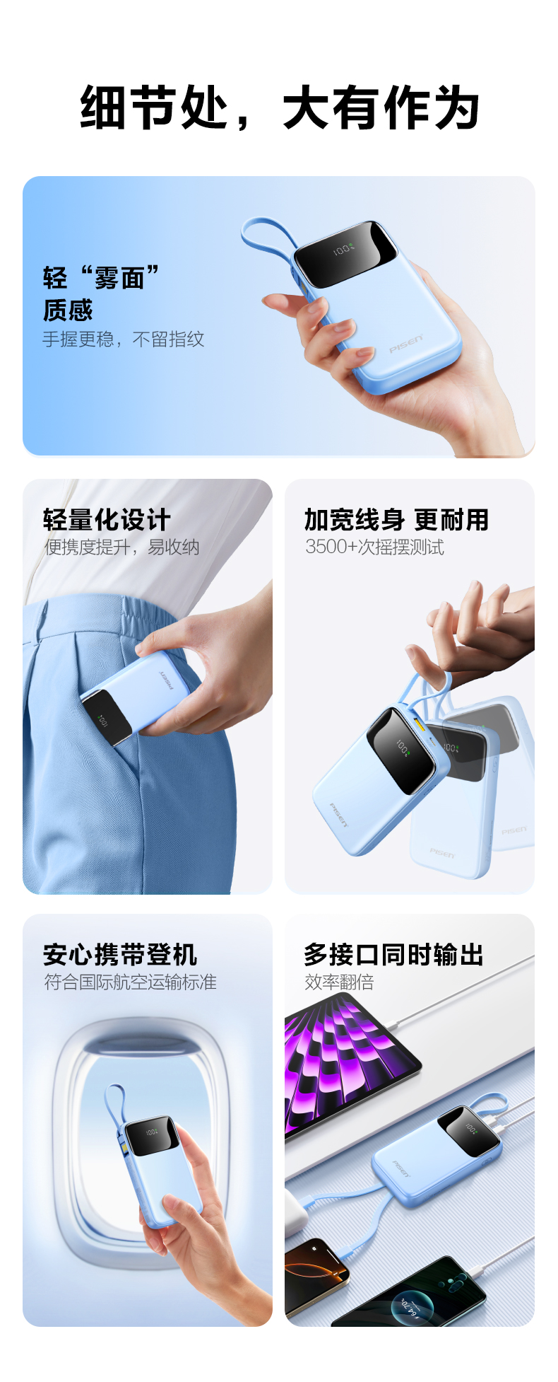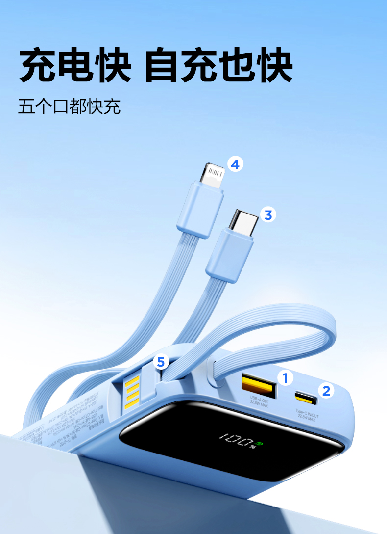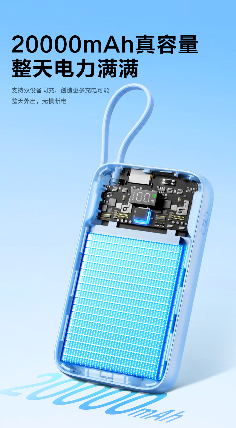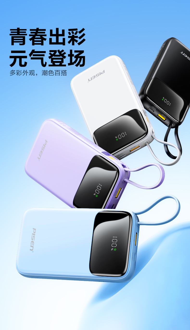 品胜 22.5W三线快充电宝20000毫安 大容量 22.5W快充移动电源适用苹果/华为/小米