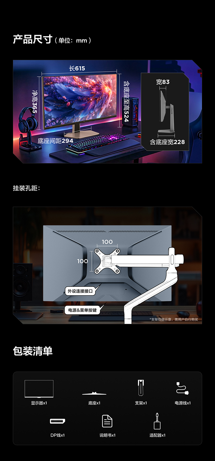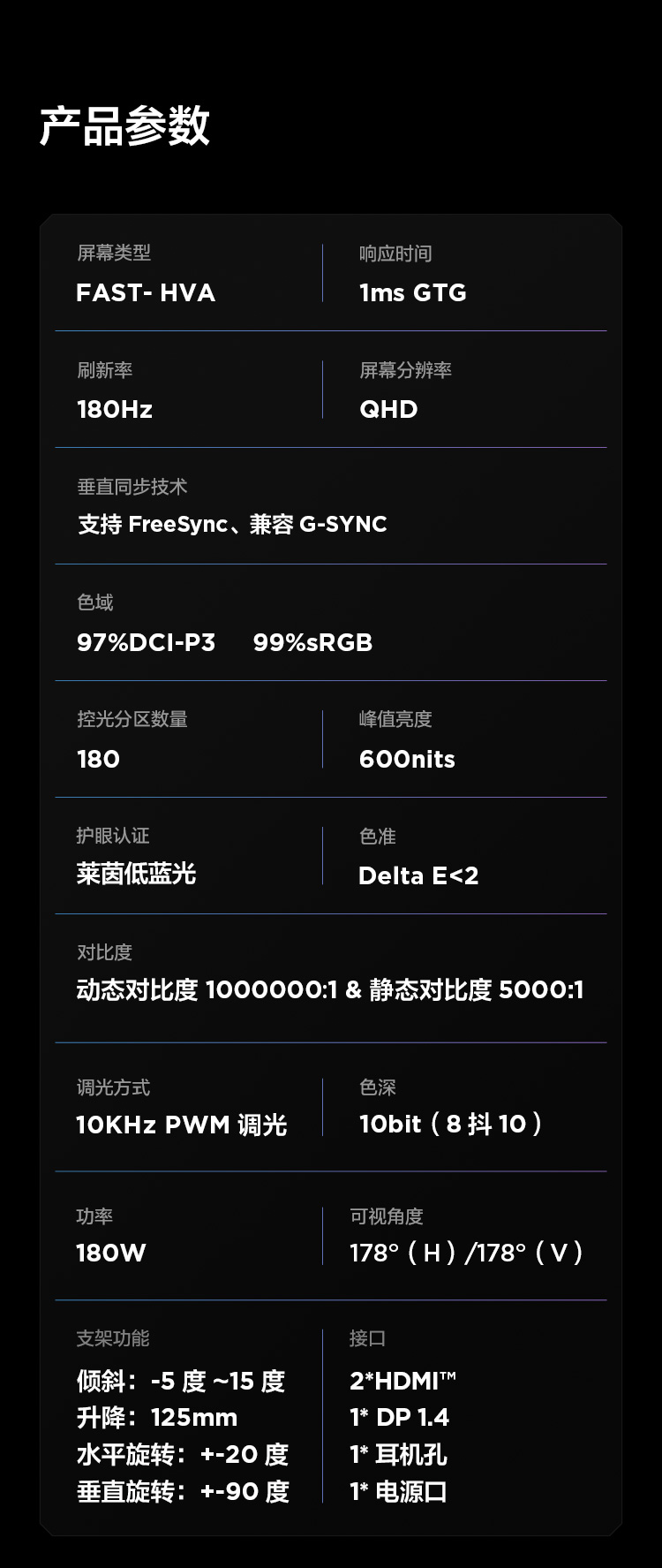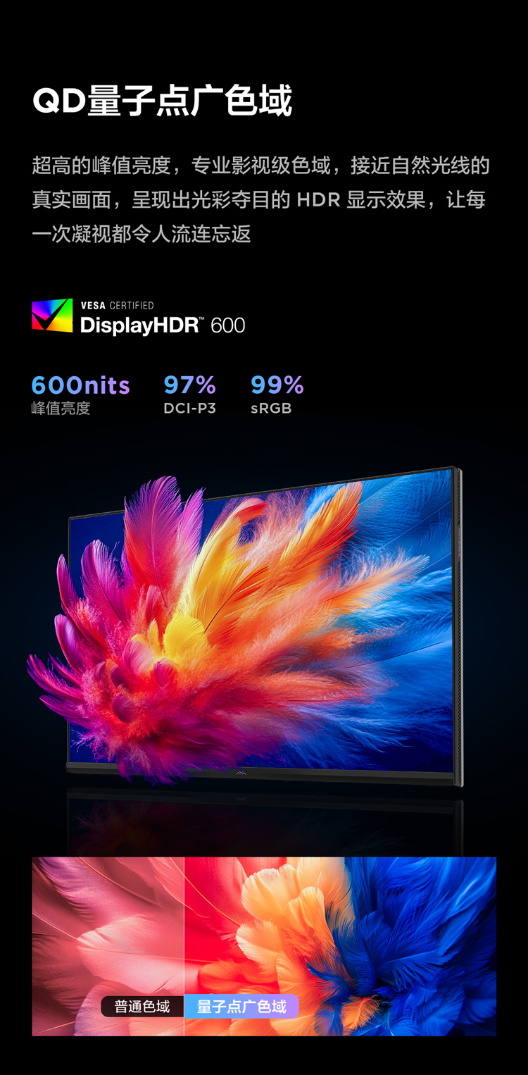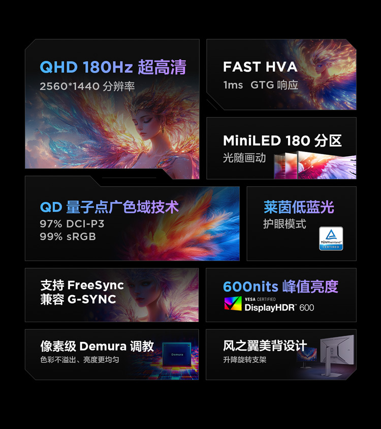 【FFALCON雷鸟】Q6 27英寸2K 180Hz高刷 QD-MiniLED游戏电竞显示器 1ms响应 HDR600 HVA 电脑显示屏 R27Q61