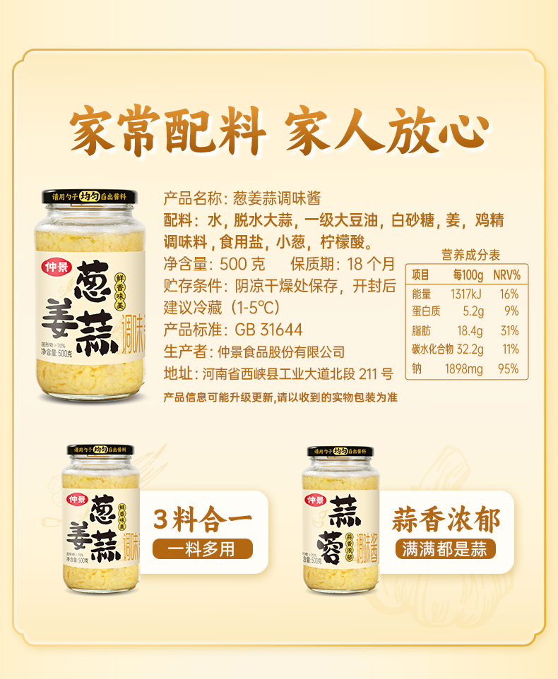 仲景葱姜蒜 调味酱蒜蓉酱蒸海鲜蒜蓉烧烤生蚝凉拌菜蒜泥火锅料500g