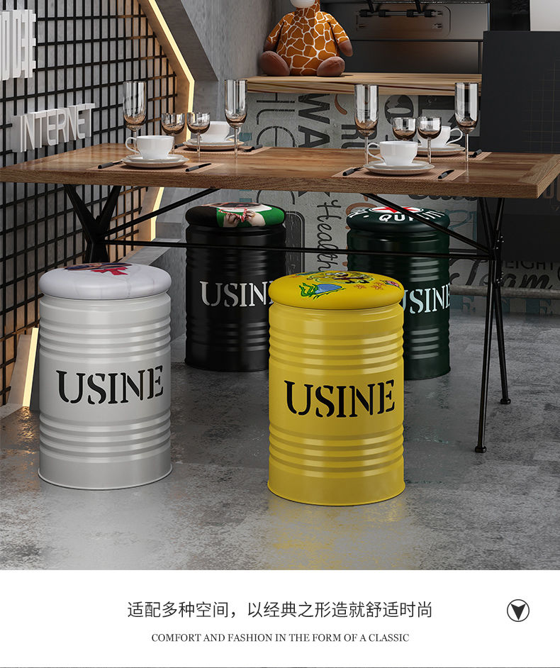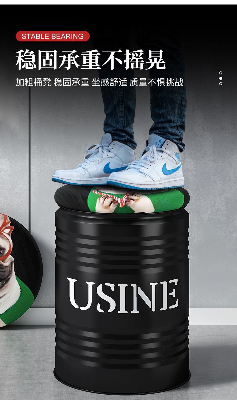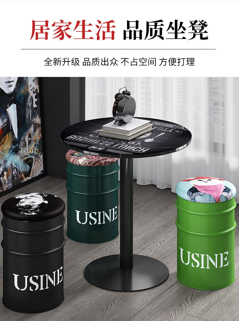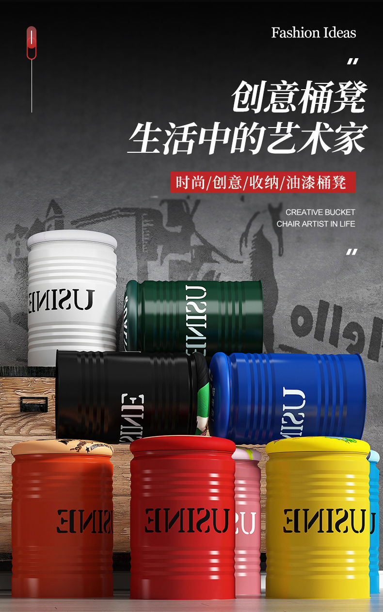 【创意桶凳,生活中的艺术家】铁艺椅储物凳,吧台凳沙发凳,油漆桶凳子,圆铁桶矮凳