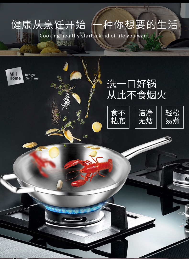 (锅身外层:430不锈钢、中层:高导热铝合金、内层:304不锈钢)