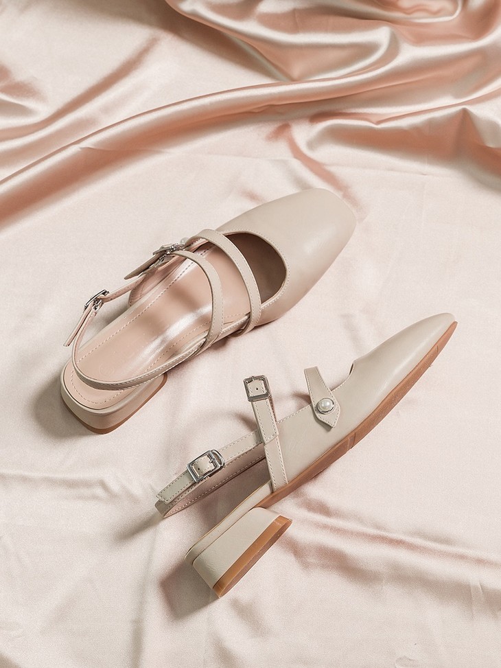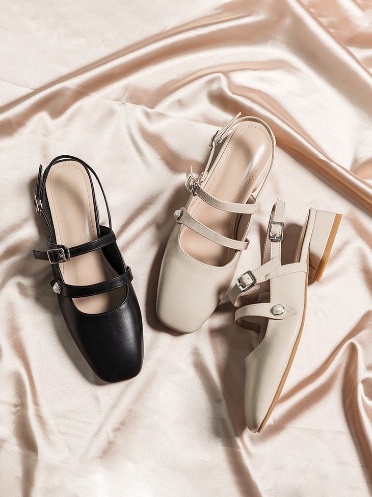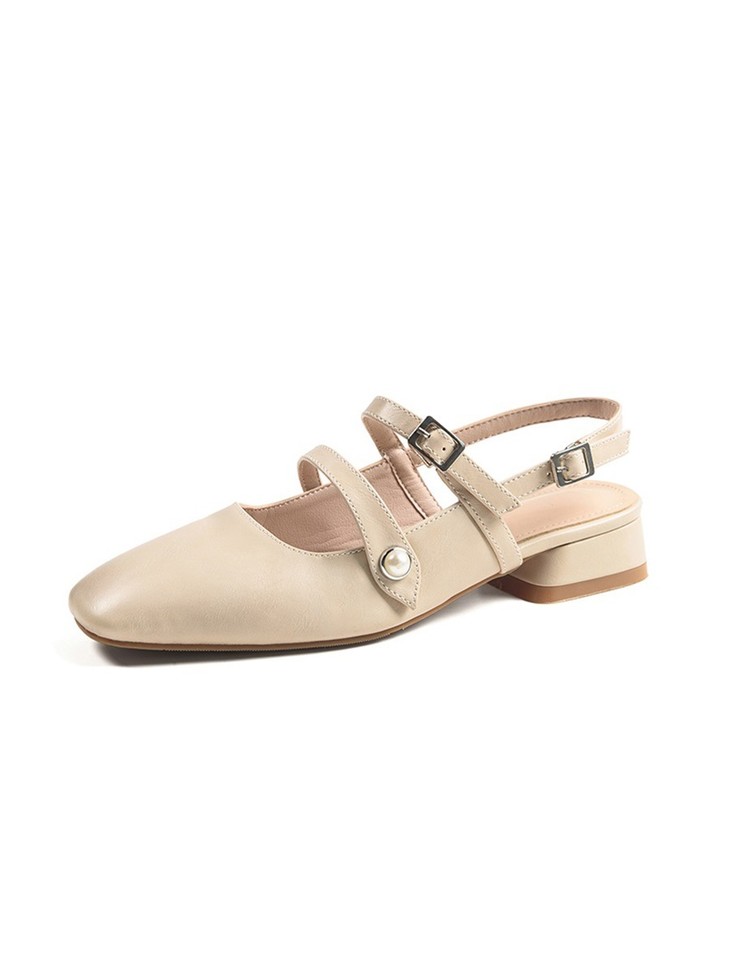 【服饰鞋包】小CK女鞋粗跟方头仙女风珍珠包头鞋女夏低跟一字扣