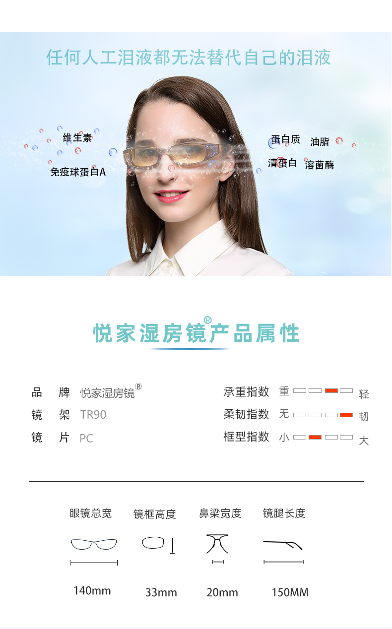 YourGa悦家湿房镜润房型YG-005防蓝光眼镜护目镜防花粉眼睛干涩缓解眼疲劳男女日系潮