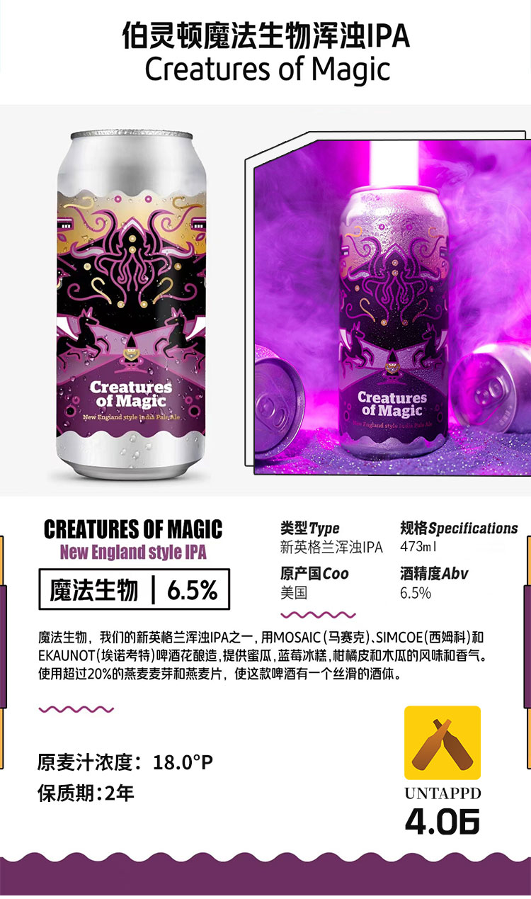 【冷库储存】美国伯灵顿魔法生物浑浊IPA 6.5%vol