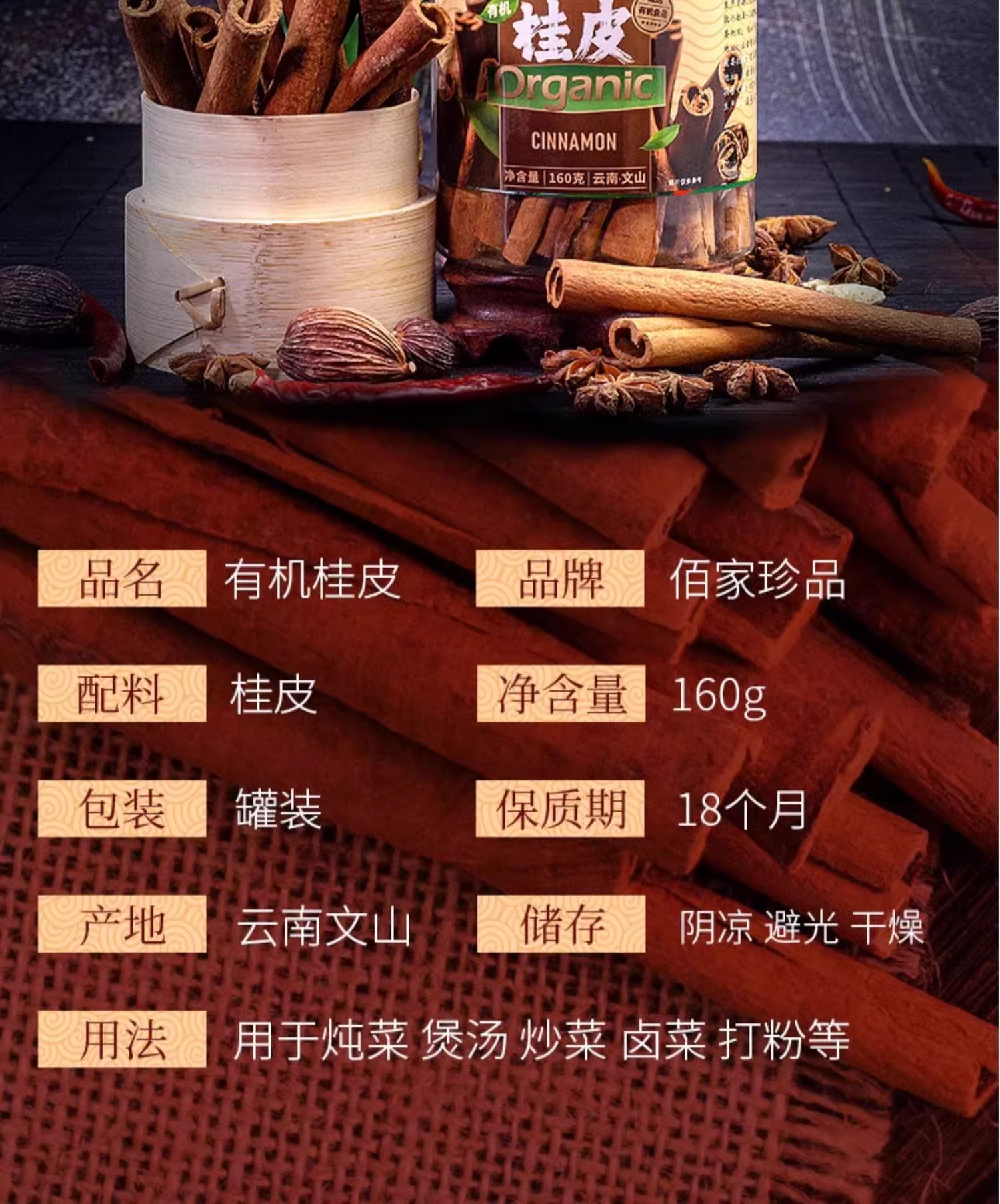有机肉桂 桂皮云南文山桂皮干货 香料调料卤料 160克