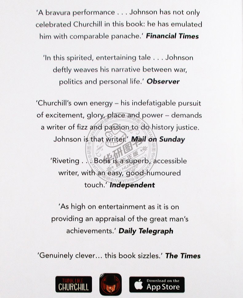 丘吉尔自身的精神力量——他对刺激、荣耀、地位和权力孜孜不倦的追求。需要一位精力充沛、充满激情的作家来公正地对待历史。而那个人正是约翰逊。——《星期日邮报》
