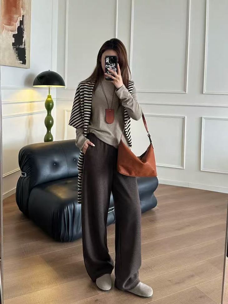 这样高品质的羊毛裤搭配大衣什么的,太显高阶感了,一看就是品质货!