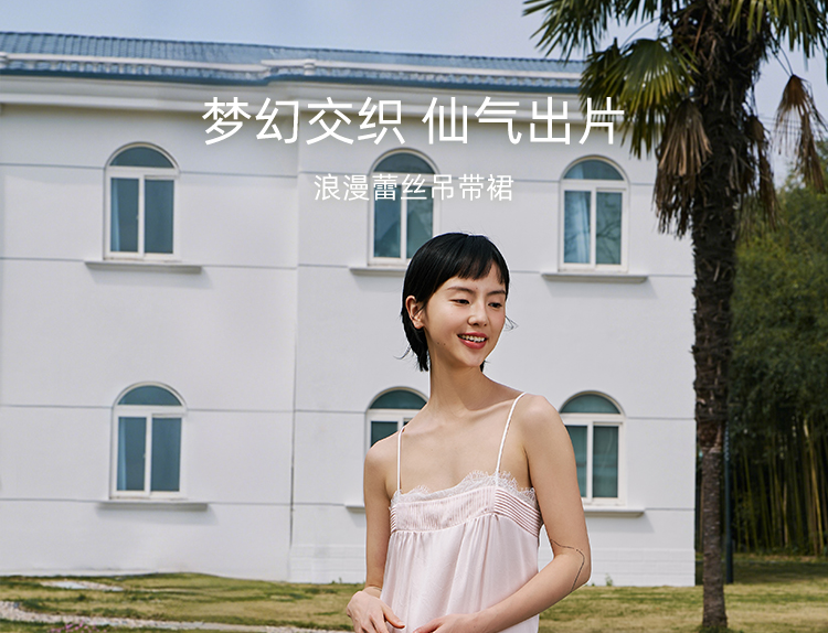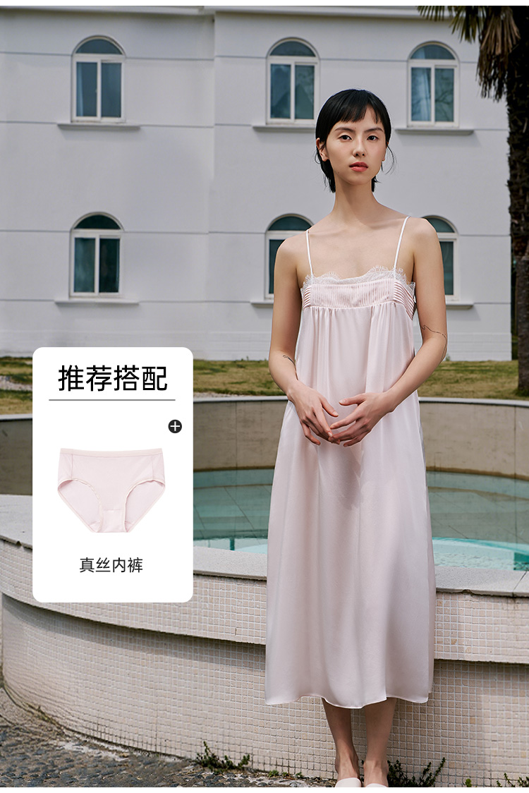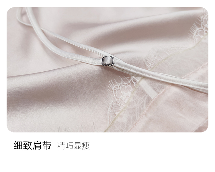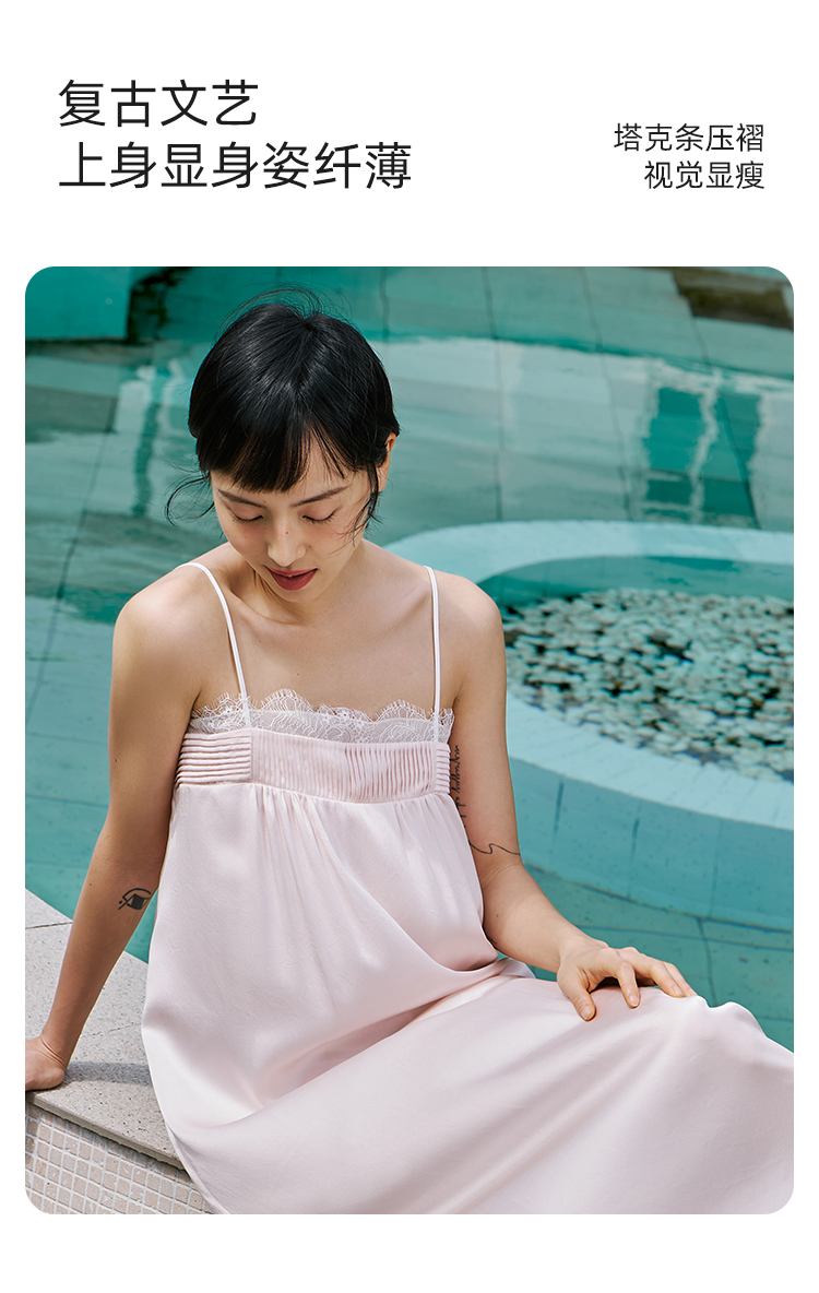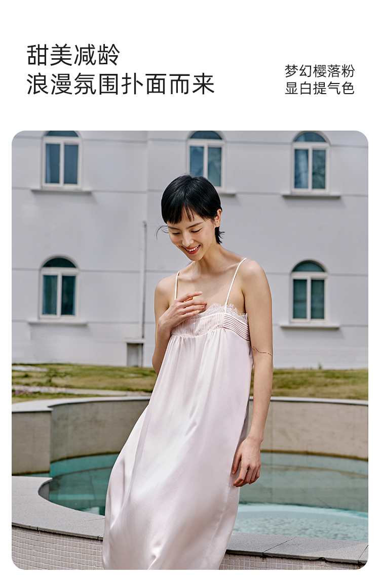 桑罗樱花粉浪漫蕾丝吊带裙女夏100%桑蚕丝甜美减龄2025年新款