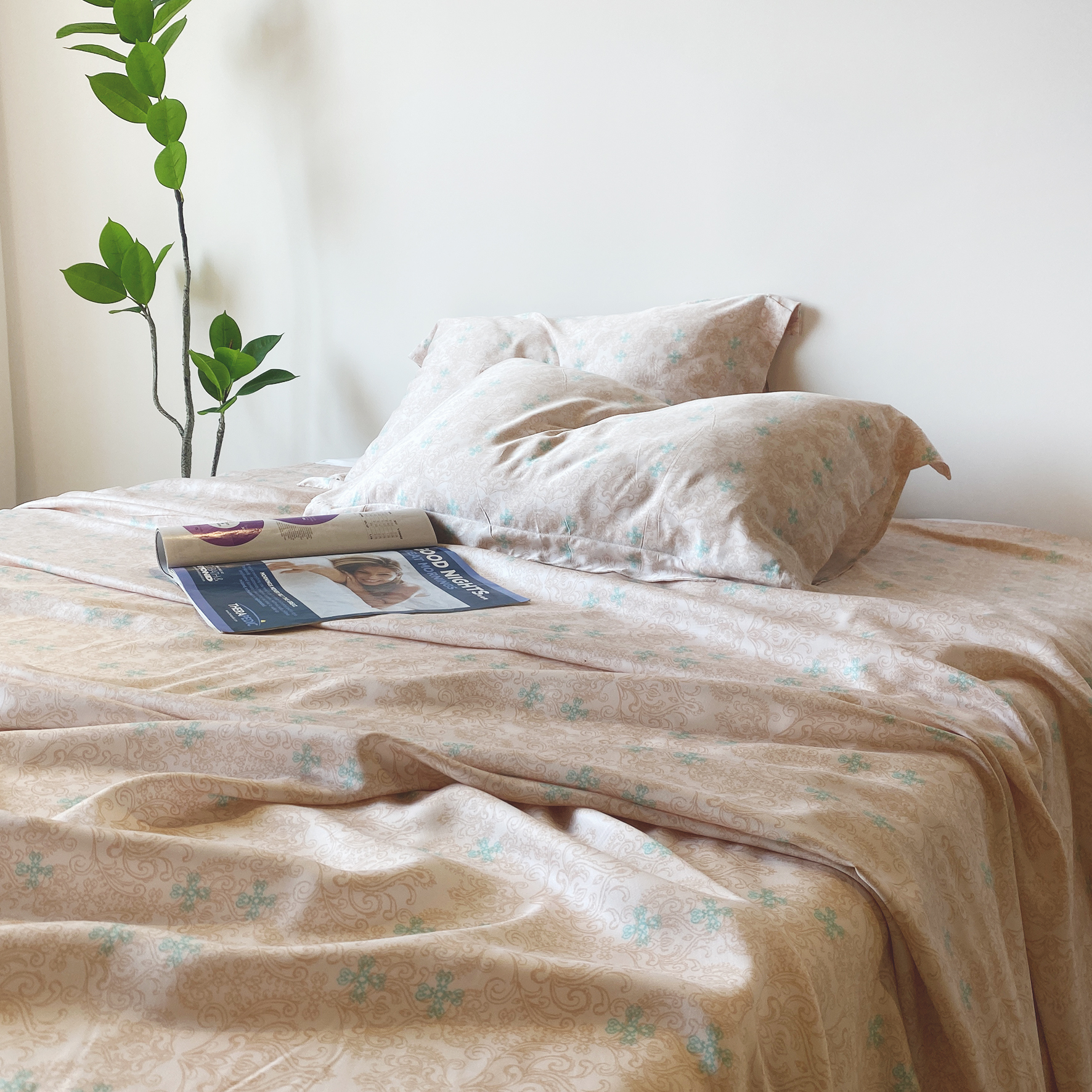 天丝棉四件套-花畔 (35%棉 65%莱赛尔) 一床双风格,承包四季温柔
