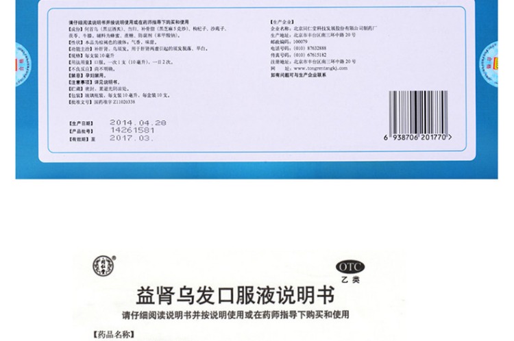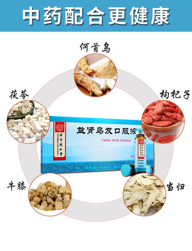 多盒优惠】同仁堂 益肾乌发口服液10支 补肝肾虚乌须发早白脱落