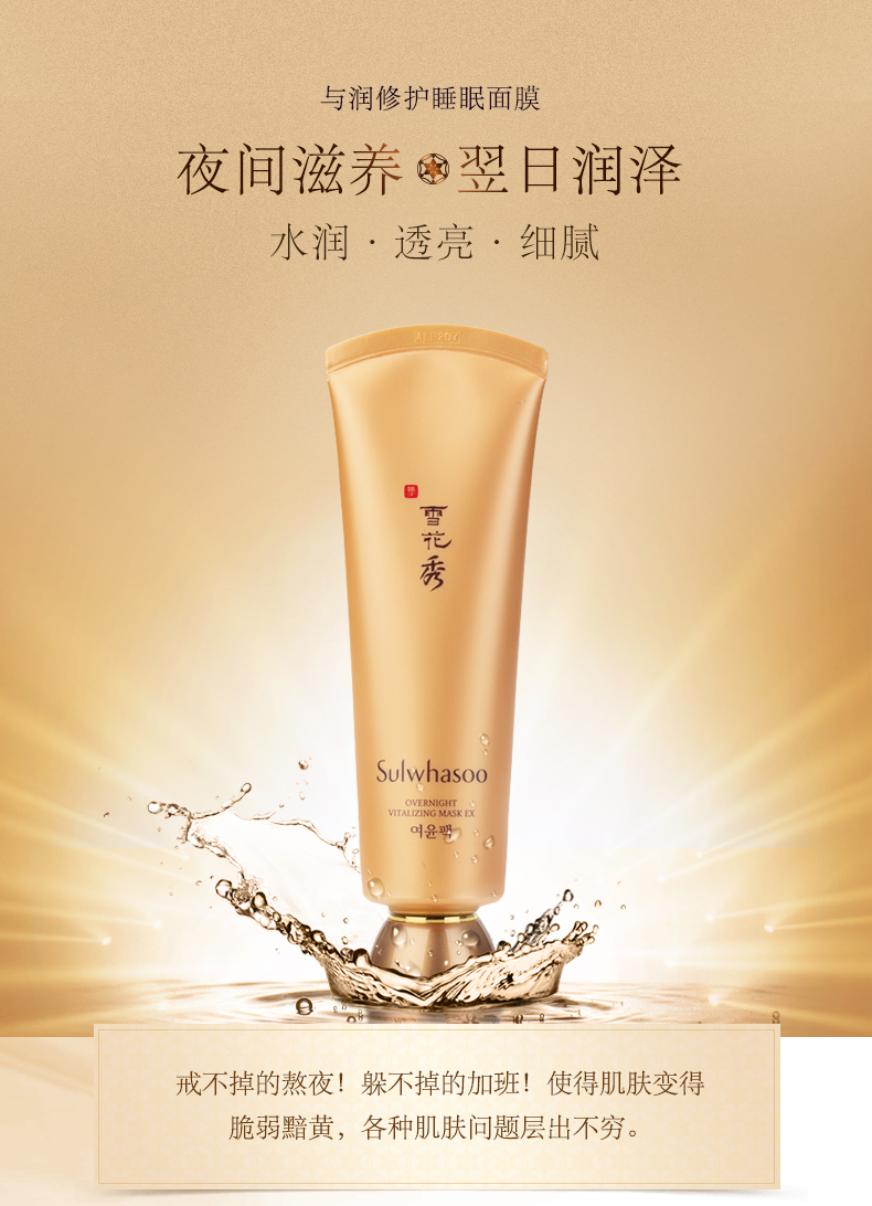 韩国雪花秀与润夜间修护面膜120ml/支补水保湿去黄收缩毛孔