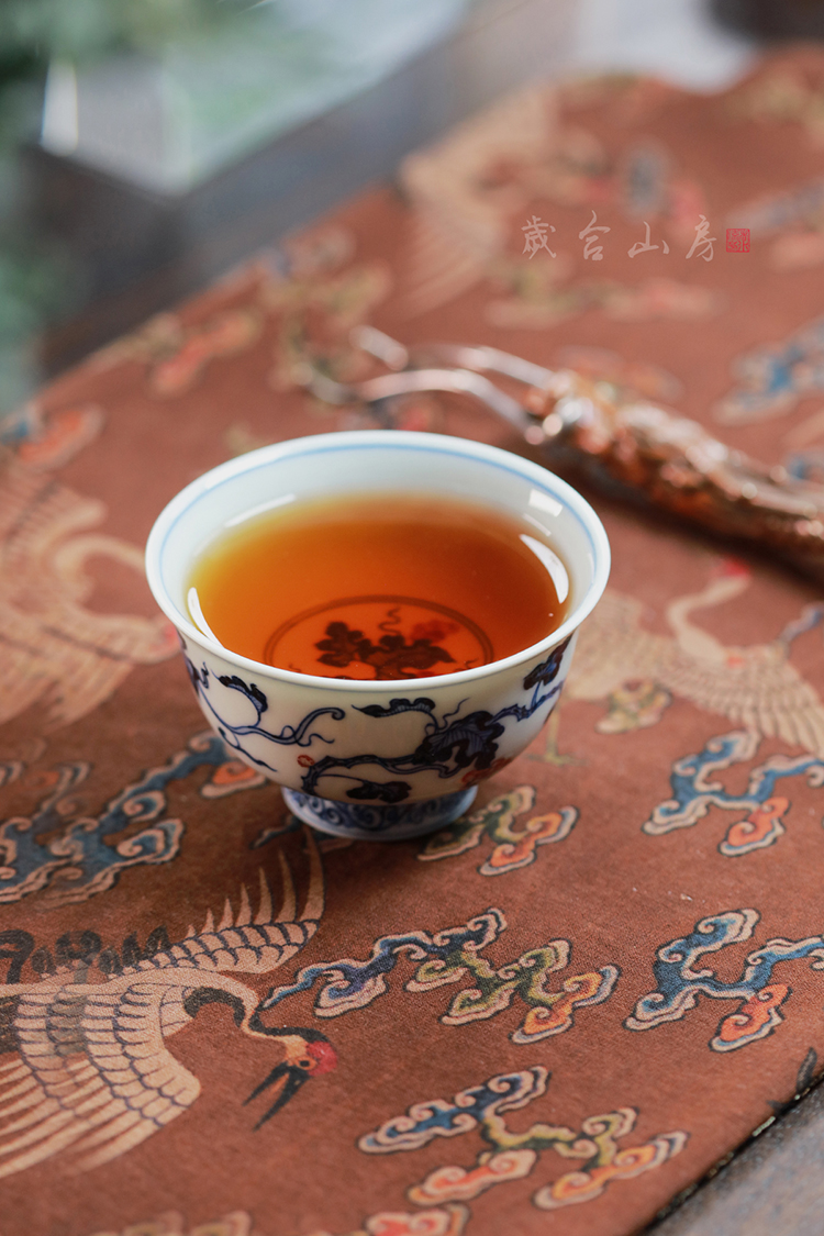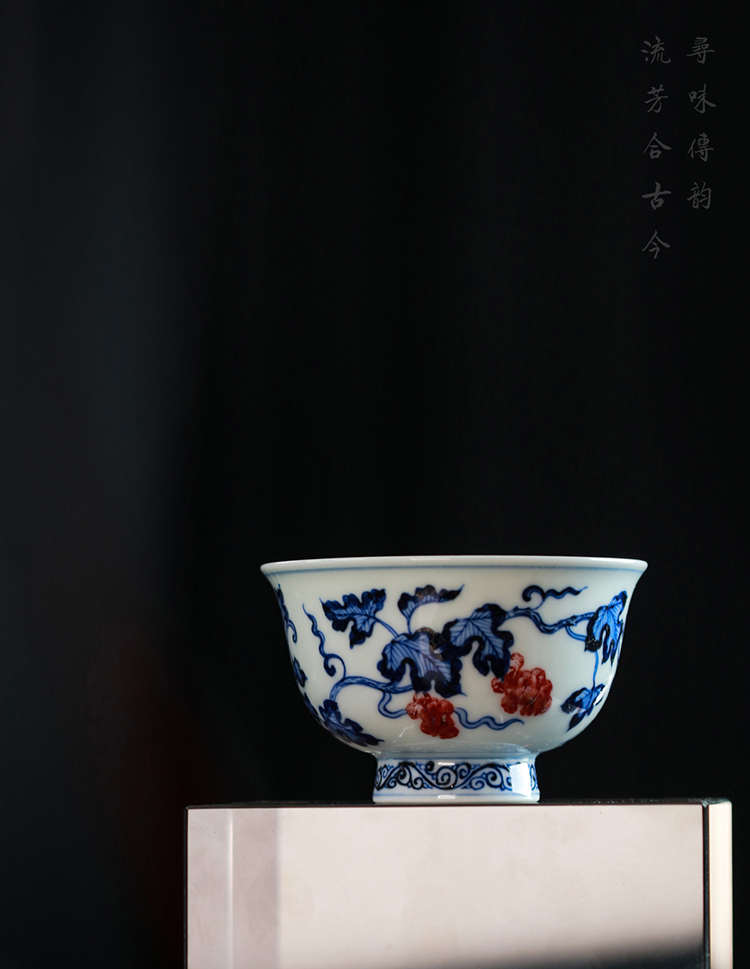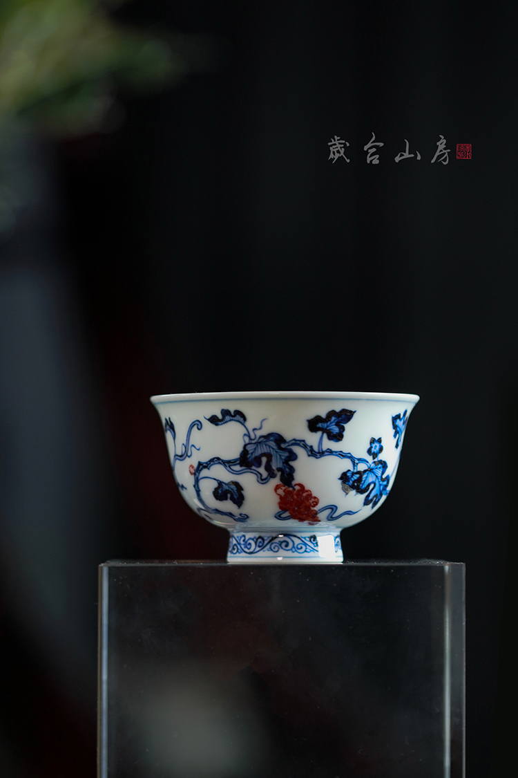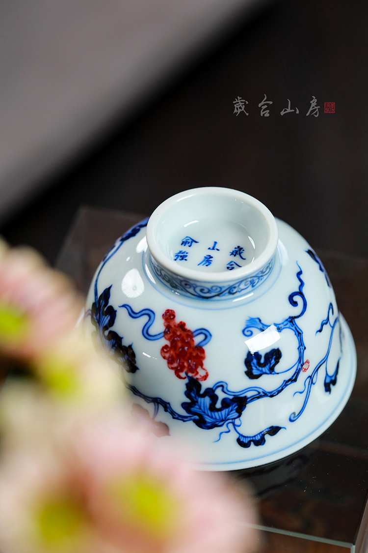 歲合山房俞强款青花釉里红葡萄撇口杯