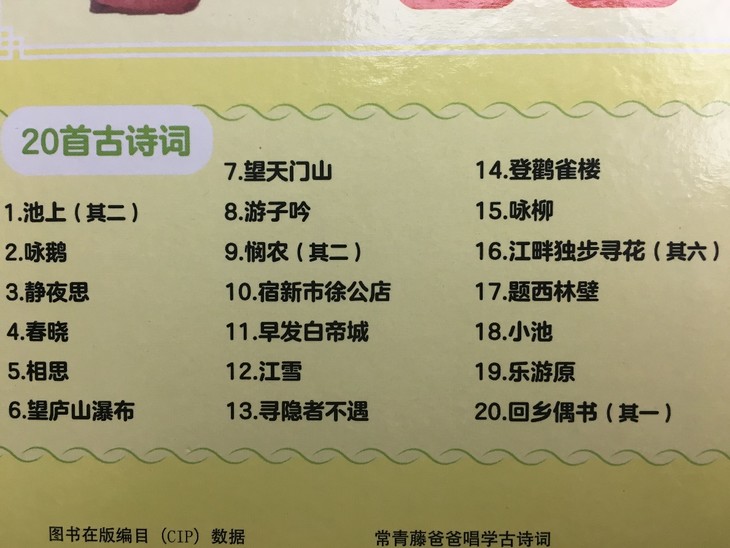 虽说仅仅只有20首,但是涵盖了四季、咏志、思乡等等。因为这是一本国学启蒙书,而启蒙教育在质不在量,目的是通过这些优质的古诗词,培养孩子的思维习惯。