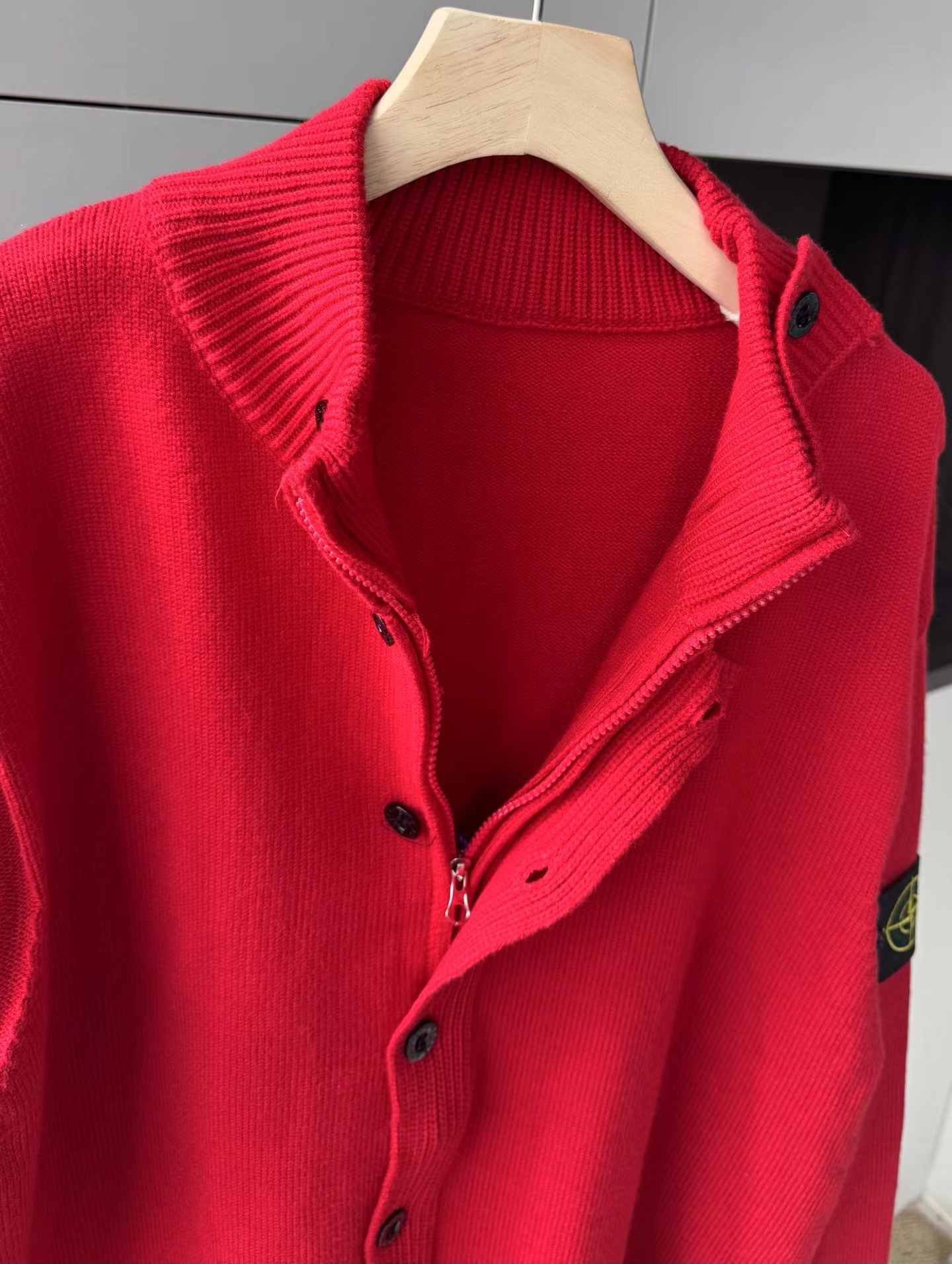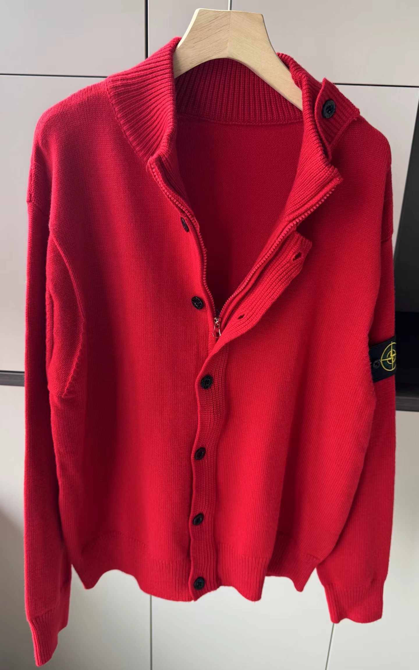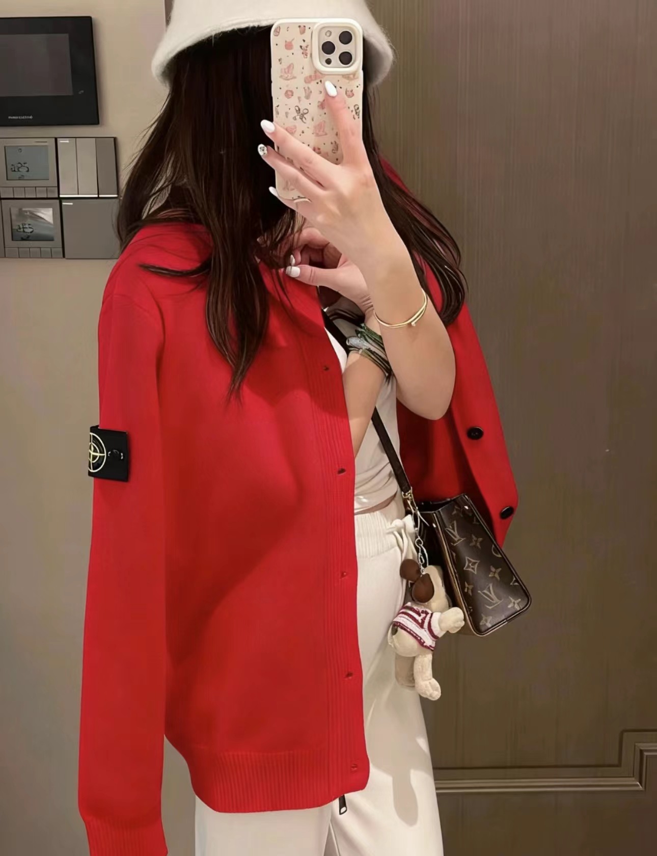 新款徽章立领拉链单排扣针织外套新年红针织开衫,兼具潮牌辨识度与节日氛围感,是日常出街和跨年穿搭的吸睛单品。采用高饱和度的正红色调,自带节日喜庆感;宽松落肩版型对身材包容度高,慵懒随性又显利落。软糯亲肤的针织面料,保暖性佳;正面是精典的黑色纽扣开合,穿脱方便;左臂上的标志性罗盘徽章,是潮牌身份的点睛之笔。单穿内搭都出彩,搭配黑色阔腿裤就很有松弛感,也可以叠穿大衣、羽绒服,轻松打造新年氛围感穿搭。
