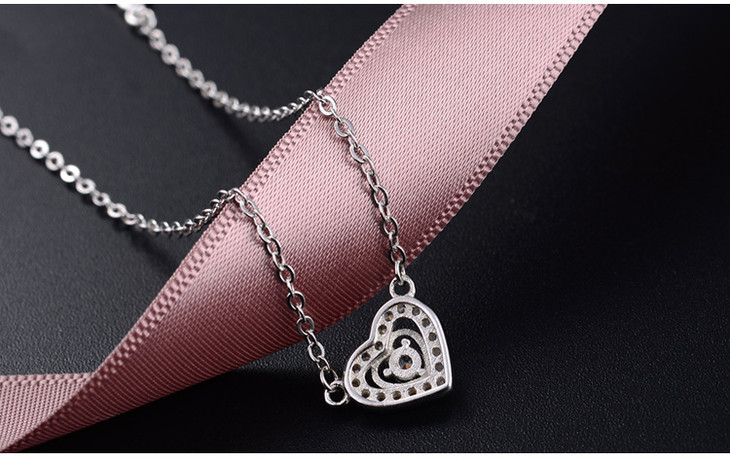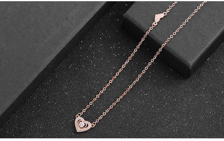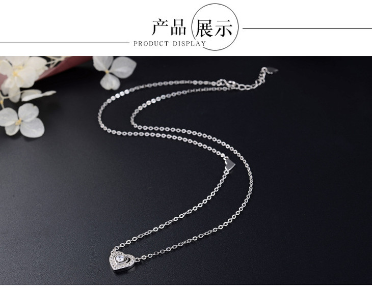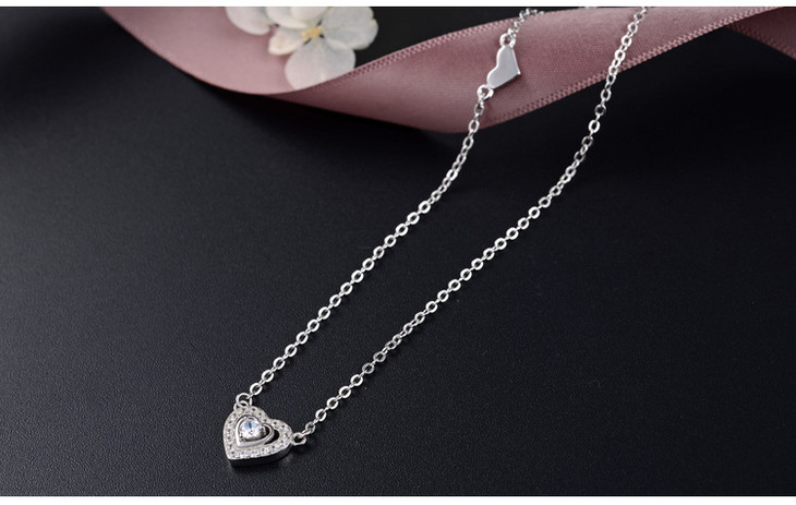 【首饰】s925纯银简约爱心锆石吊坠锁骨链