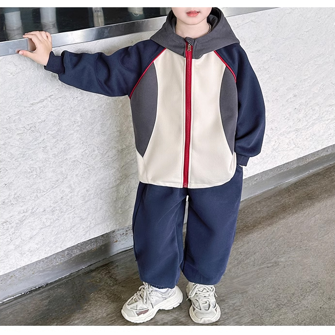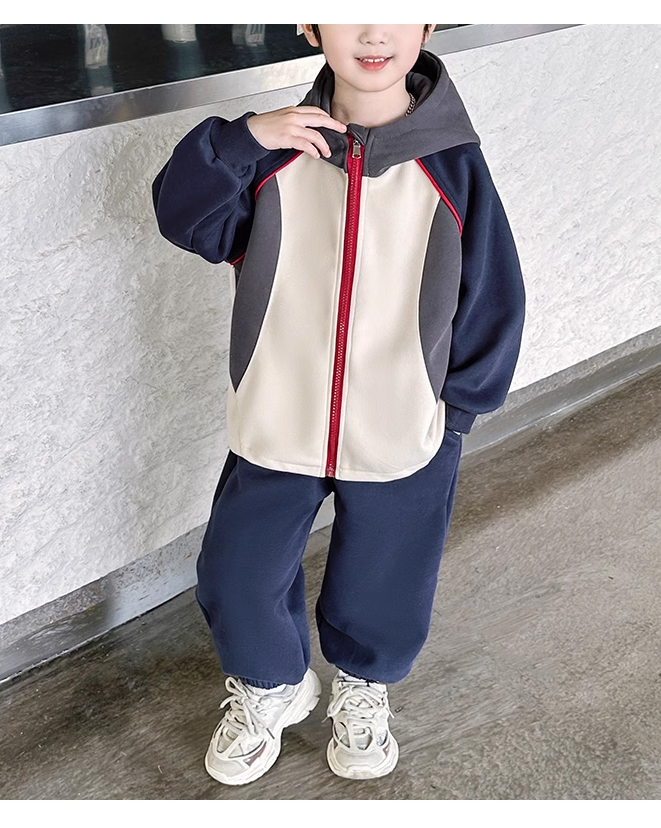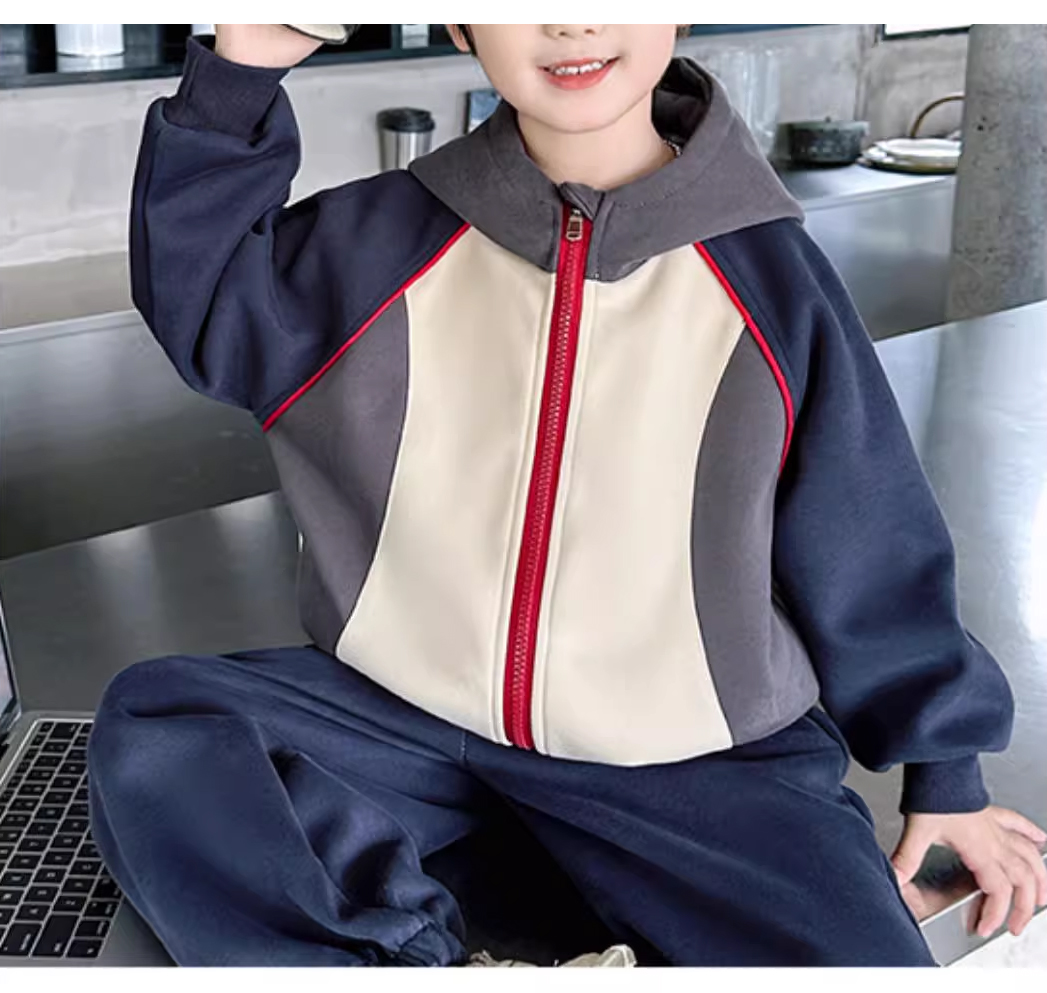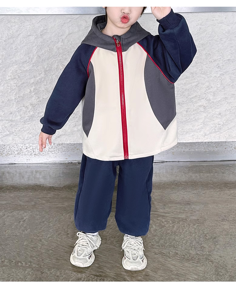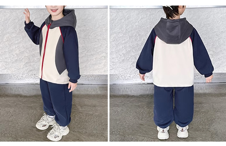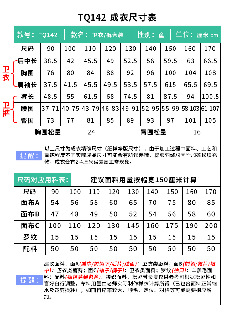 裁缝学苑TQ142新款连帽插肩袖拼接运动服套装纸样儿童卫衣裤子样板图纸