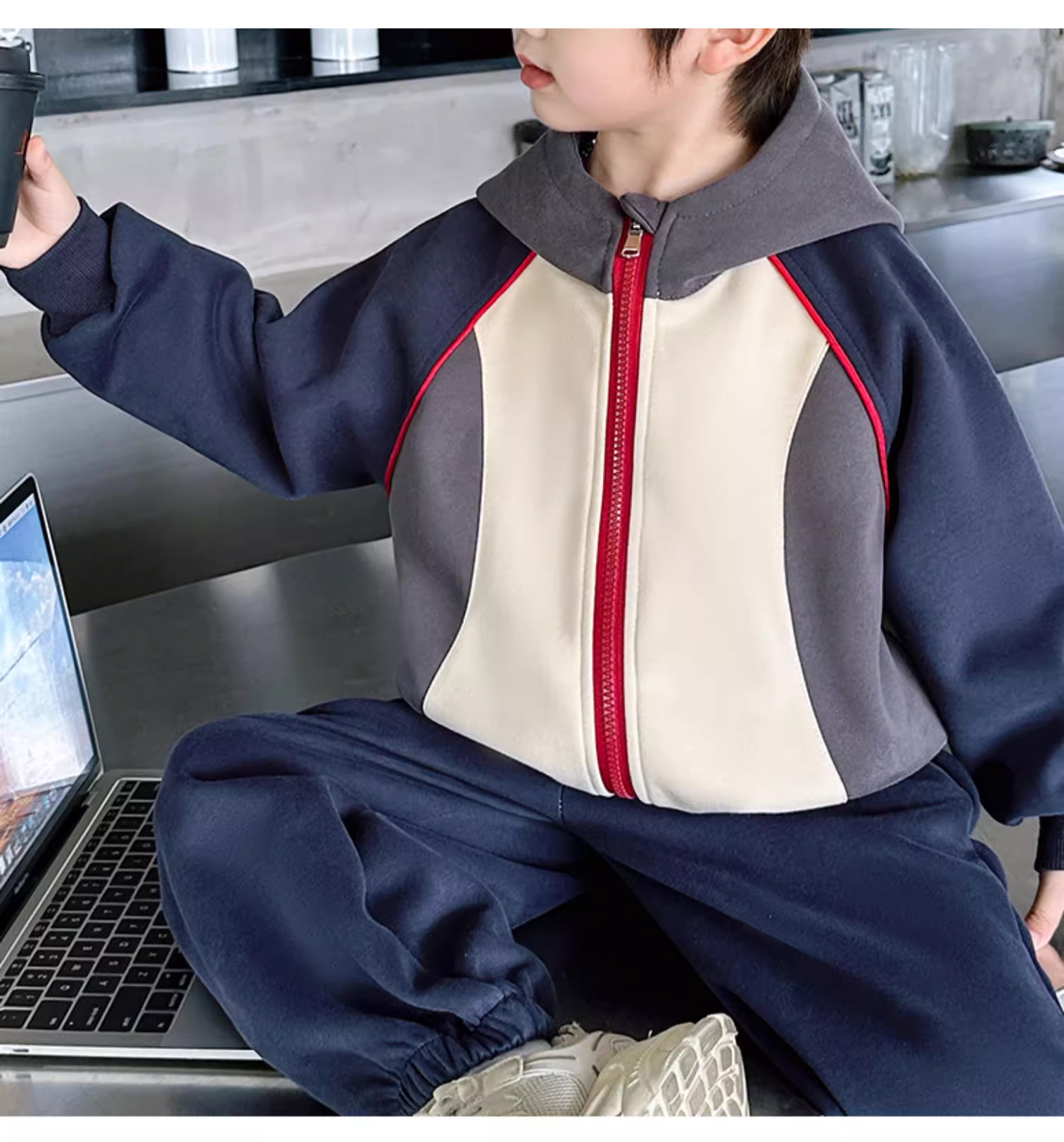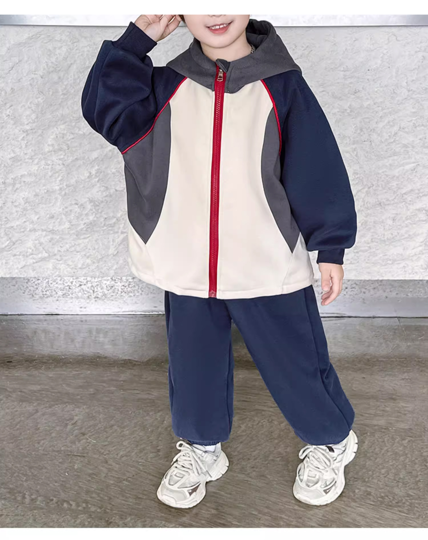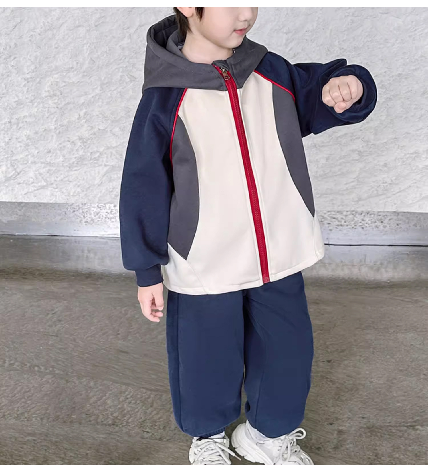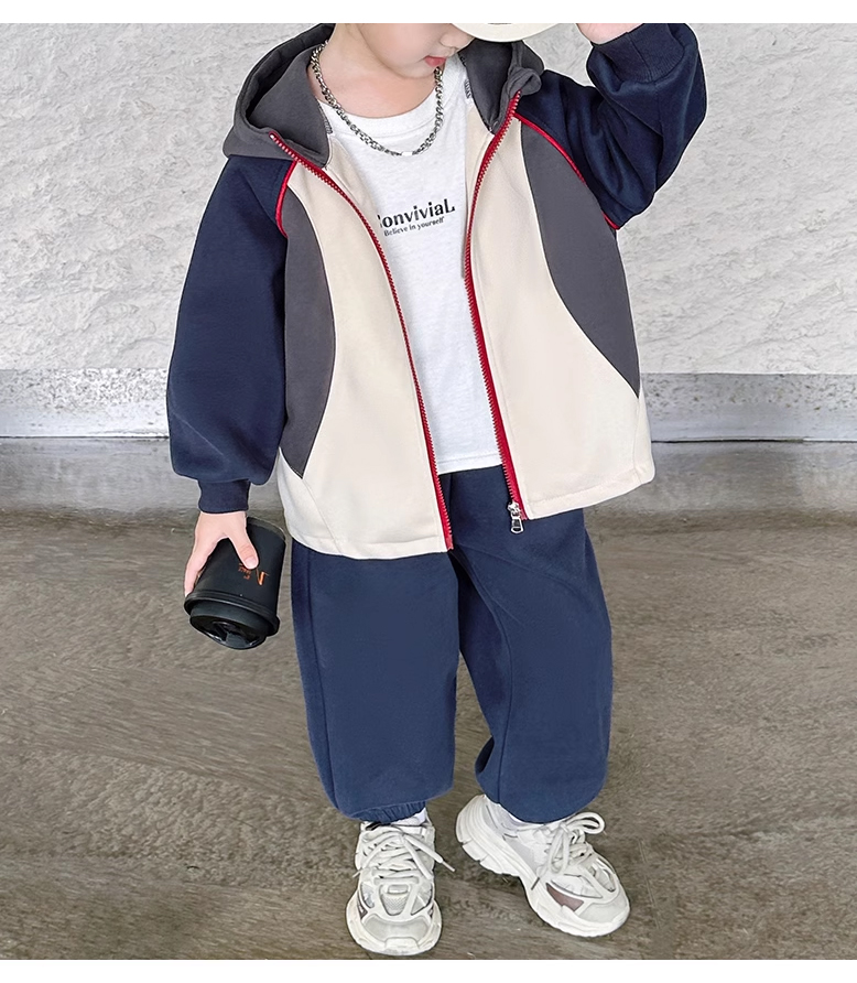 裁缝学苑TQ142新款连帽插肩袖拼接运动服套装纸样儿童卫衣裤子样板图纸