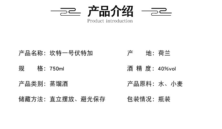 荷兰 坎特一号伏特加 基酒 配制酒 40%vol 750ml