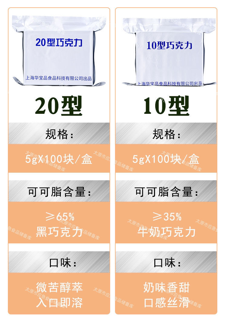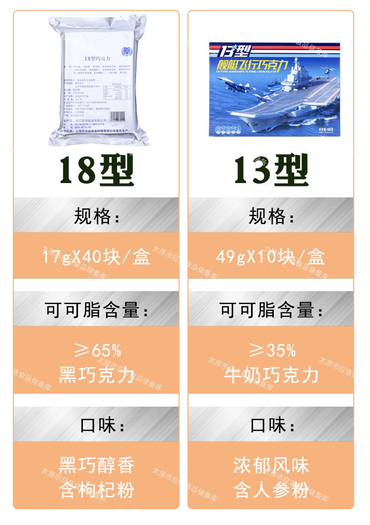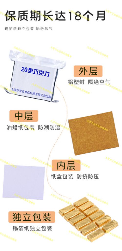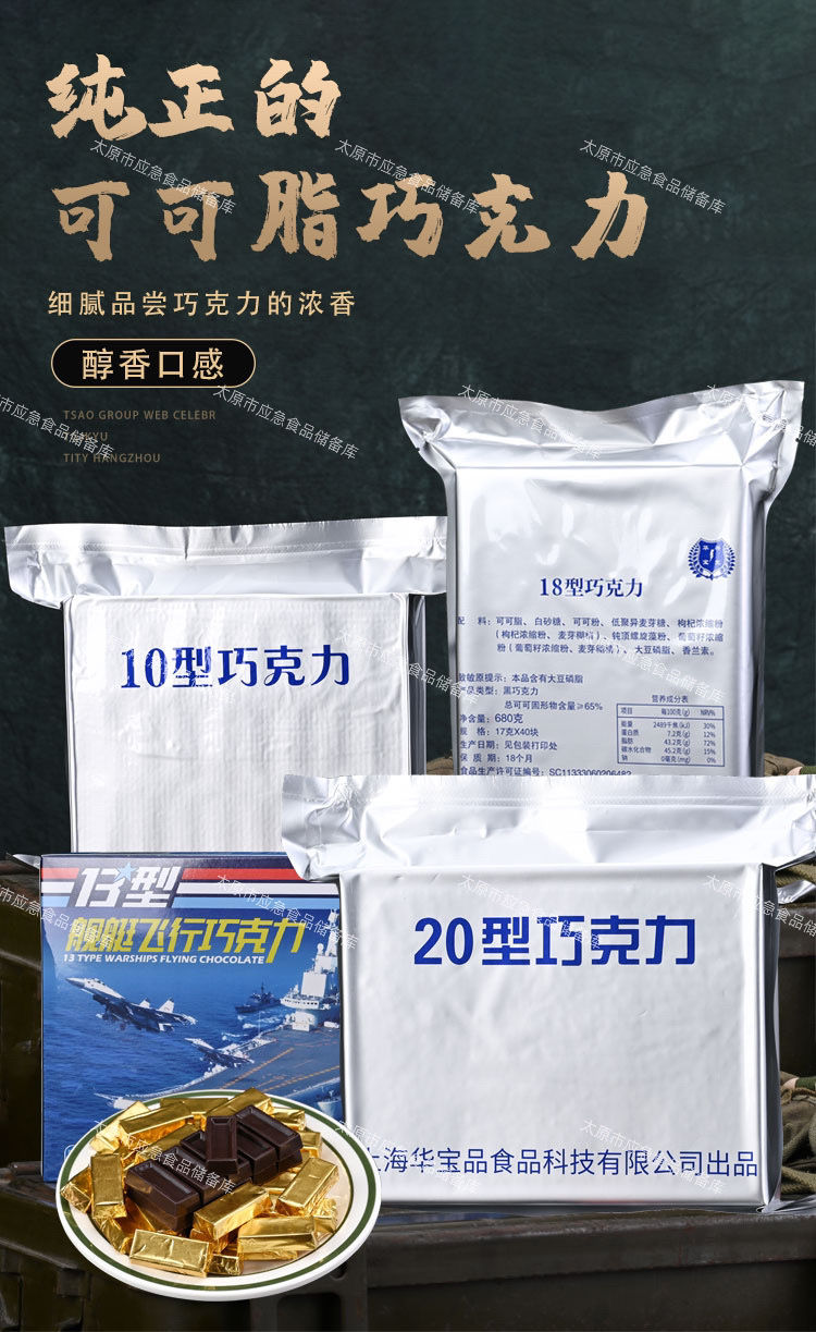 华宝兴光13型巧克力舰艇纯可可脂长期应急储备零食即食甜点