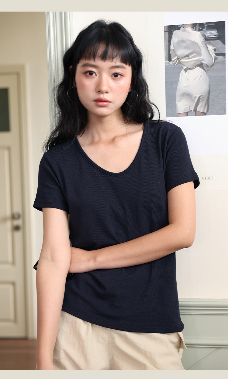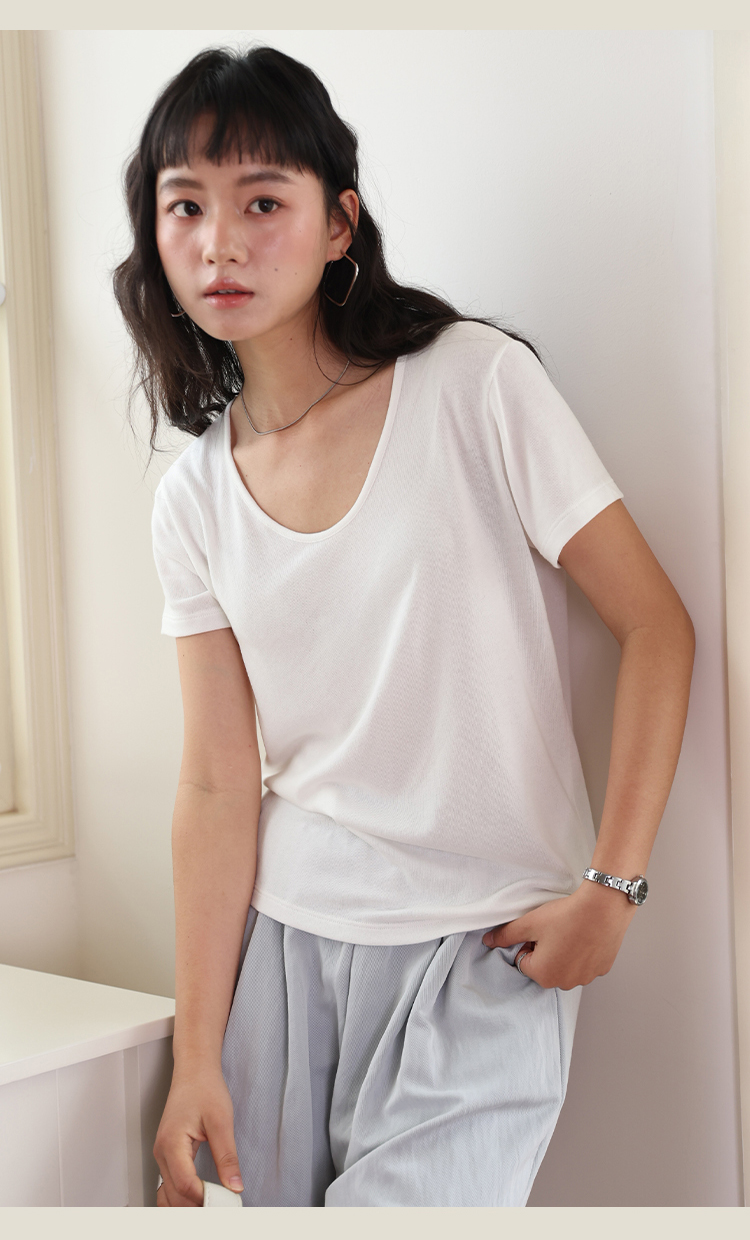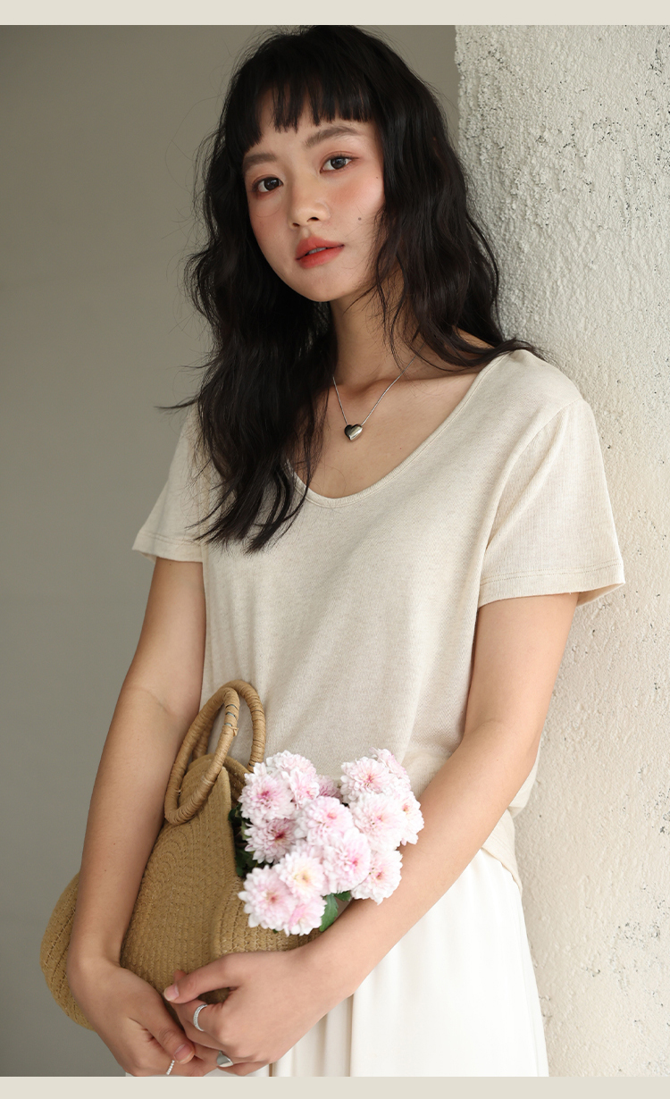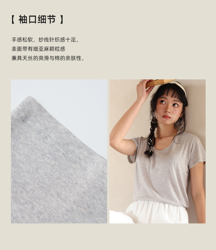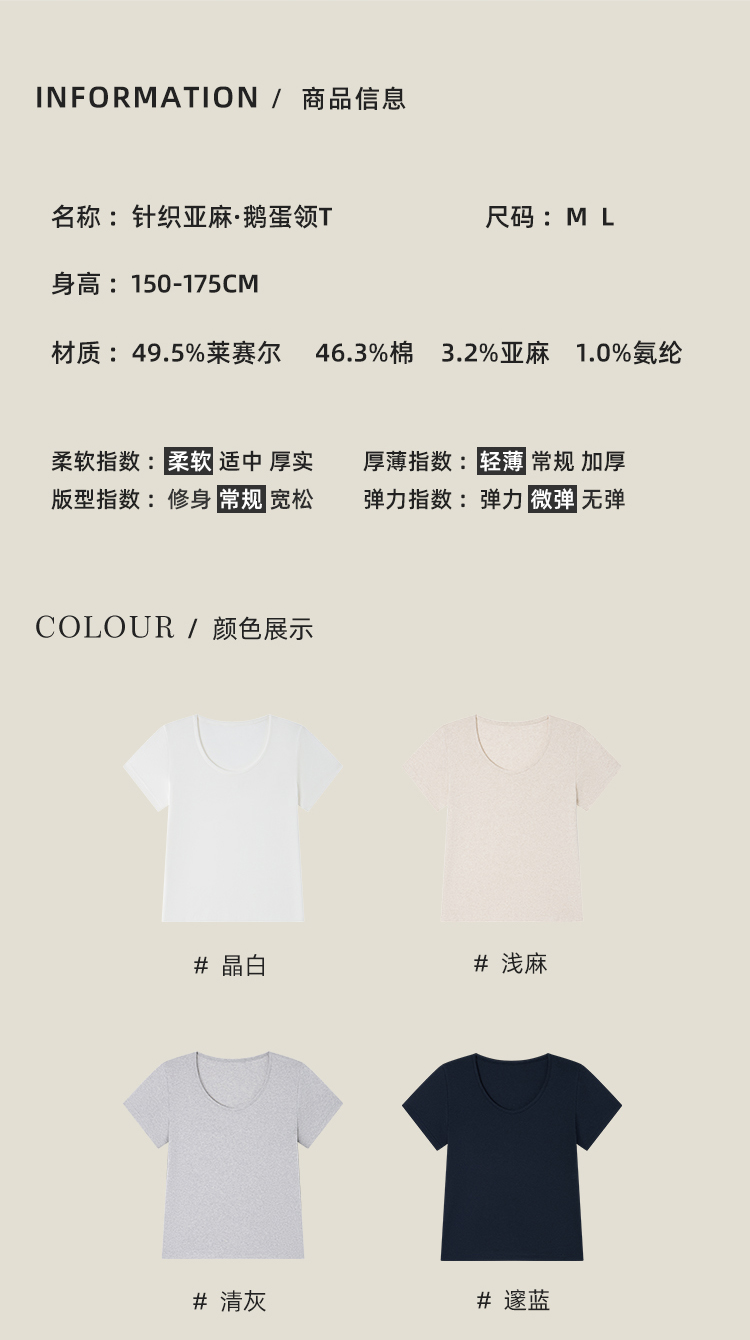 【KEMU】法国亚麻×奥地利天丝 鹅蛋领针织T恤 | 凉感透气显瘦 法式慵懒风ins高级感上衣